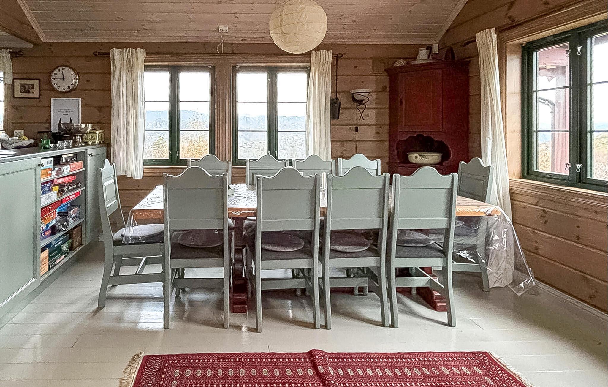 Dieses große Ferienhaus in Ljosland bietet Ihnen einen atemberaubenden Blick auf die umliegende Berglandschaft, den Sie von der großen Terrasse aus genießen können. Die rustikale, skandinavische Einrichtung mit viel Holz und gemütlichen Sitzbereichen schafft eine behagliche Atmosphäre, in der Sie sich sofort wohlfühlen werden. Befeuern Sie den Kamin, spielen am Esstisch und planen Ihre nächsten Ausflüge. Nach einem aktiven Tag in der Natur lädt Sie der Whirlpool zu einem entspannenden Bad und die Sauna zu wohliger Wärme ein.