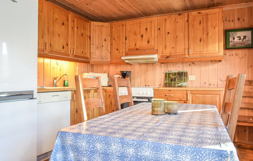 Dieses authentische Ferienhaus befindet sich auf einem schönen Grundstück direkt am See und mit Steg. Im Haus erwartet Sie eine gemütliche Atmosphäre mit viel Holz und schönen Möbeln. An kühlen Tagen bietet der Kaminofen im Wohnzimmer angenehme Wärme und Gemütlichkeit. Verbringen Sie hier entspannte Abende auf dem Sofa oder versammeln Sie sich für ein Brettspiel am Esstisch in der Küche.