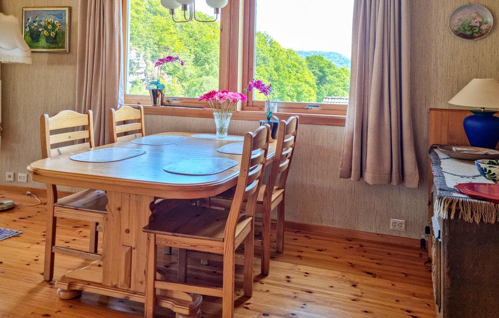 Hier können Sie mal richtig frische Fjordluft schnuppern! Dieses Ferienhaus, das im gemütlichen Dorf Svenevik und in Gehweite zum Fjord liegt, heißt Sie herzlich willkommen. Das einladende Ferienhaus ist im gemütlichen, alten Stil gehalten und bietet Ihnen einen herrlichen Blick auf den Fjord. Die warmen Farben schaffen eine angenehme Atmosphäre. Unterhalten Sie sich bei einem Kaffee in einem der drei Sofabereiche und kochen Sie gemeinsam in der Küche. Durch die großen Fenster können Sie die Natur hautnah erleben. Ihre Mahlzeiten können Sie auch auf der offenen Terrasse genießen. Zu Fuß erreichen Sie schnell den Fjord und einen markierten Wanderweg. Gehen Sie angeln oder schwimmen Sie im frischen Fjordwasser.