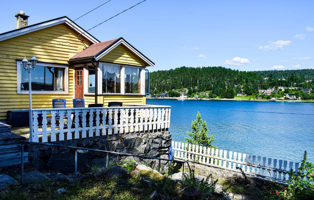 Erleben Sie in diesem Ferienhaus einen fantastischen Panoramablick auf den Fjord.