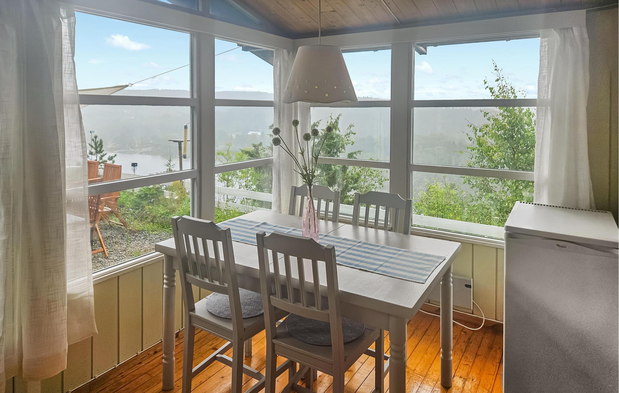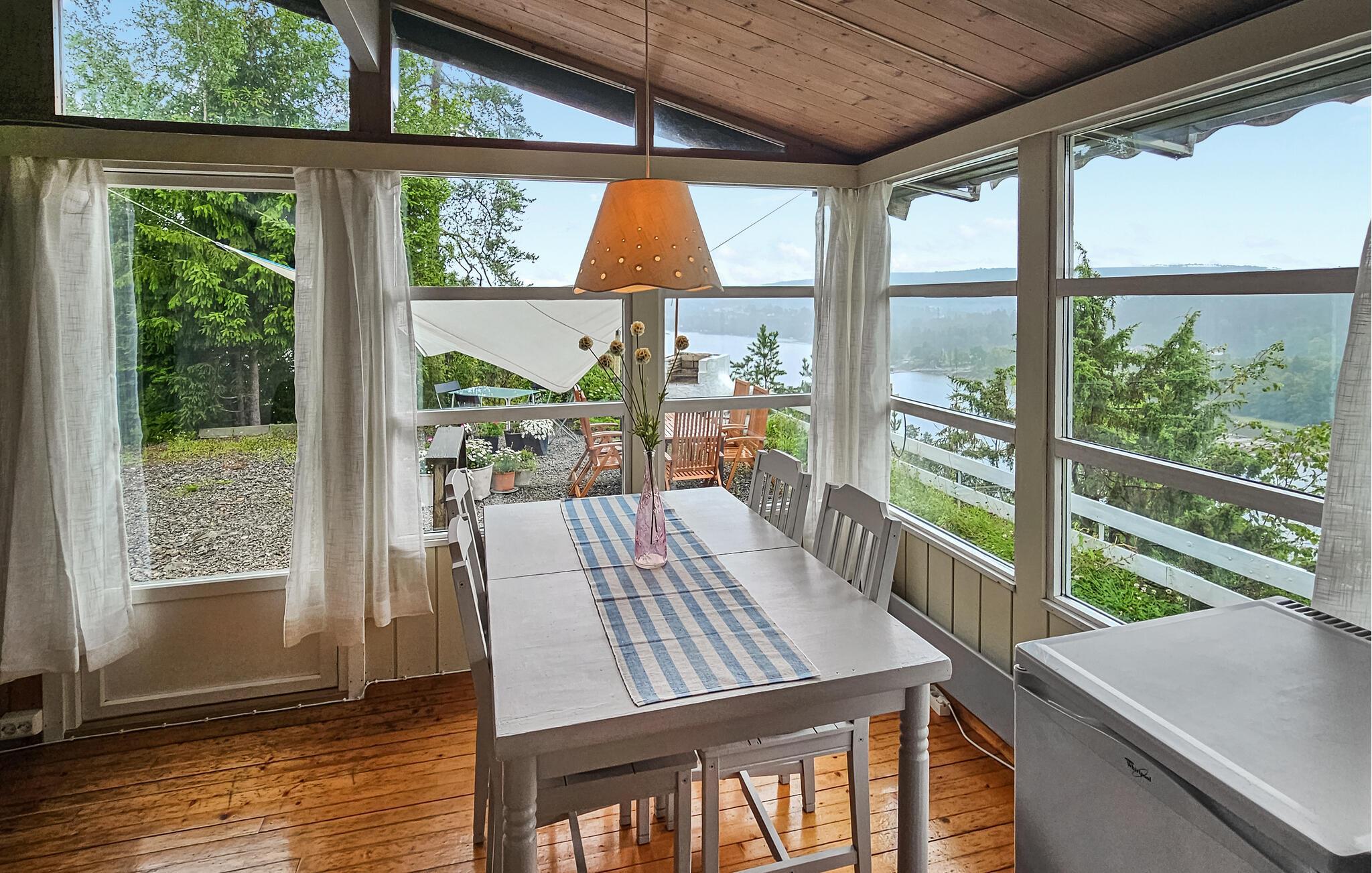Willkommen in diesem fantastisch gelegenen Haus, das Sie mit bezauberndem Blick auf den Bunnefjord empfängt. Hier können Sie die Natur hautnah erleben und gleichzeitig ein einzigartiges Panorama genießen. Machen Sie es sich in den rustikal-behaglichen Räumen nach Ihren Ausflügen gemütlich, das Sofa lädt nach einem erlebnisreichen Tag zum Entspannen ein, lassen Sie vom Esstisch den Blick über das Wasser schweifen und sorgen Sie mit einem Feuer im Kamin für eine besonders behagliche Atmosphäre. Am Haus können Sie nahe der Natur im Freien entspannen und die fantastische Aussicht voll auskosten.