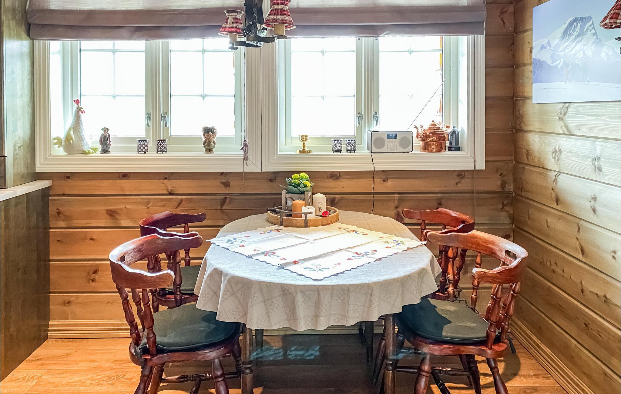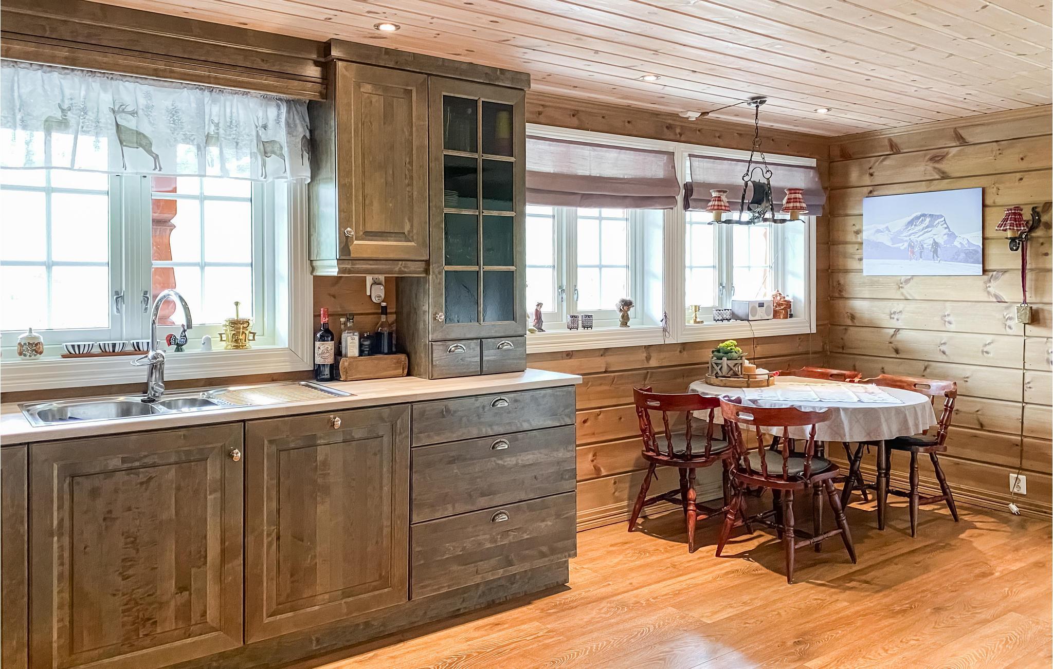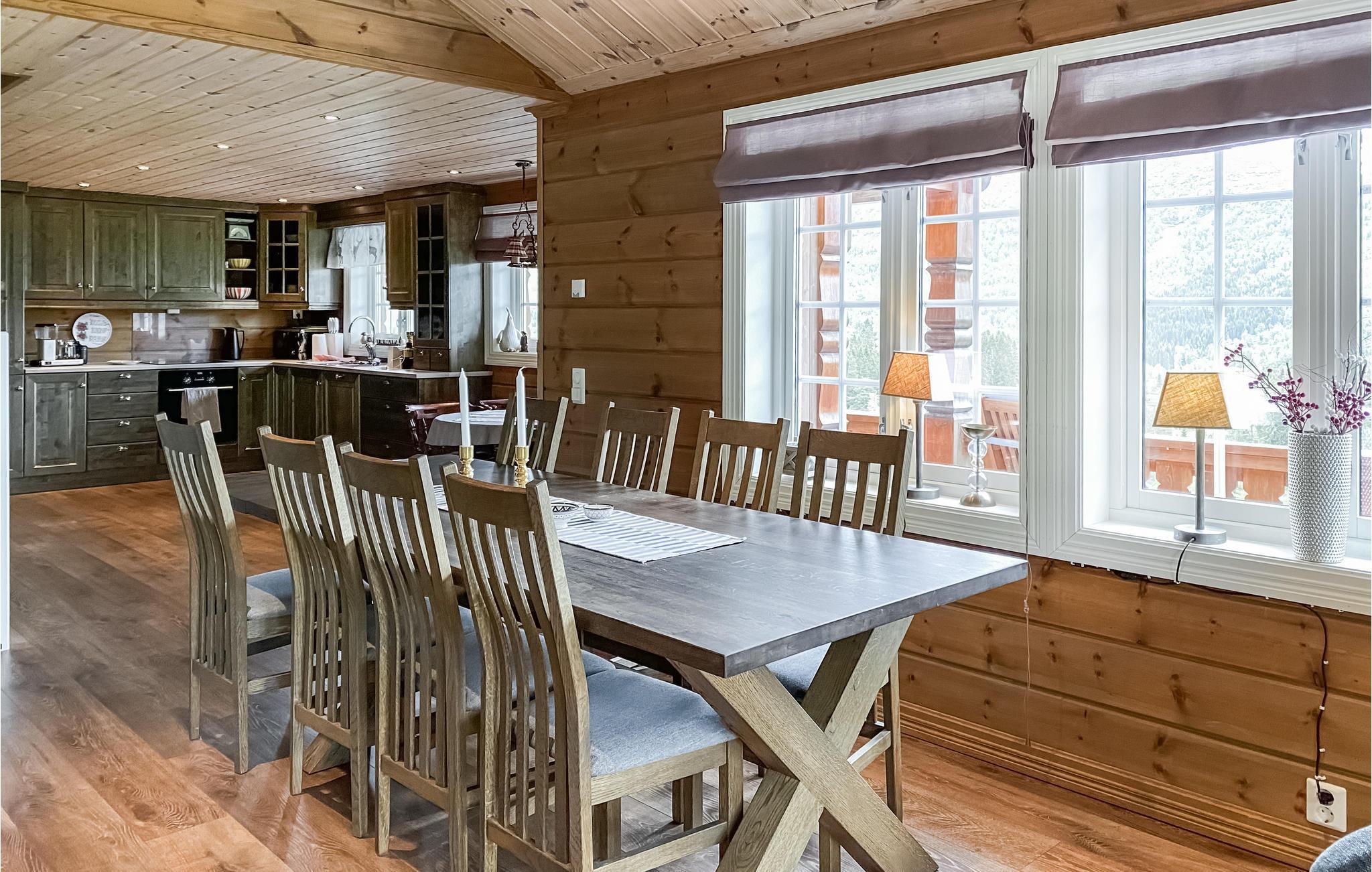 Eingebettet in die malerische Landschaft des Hjelmelandsdalen-Tals erwartet Sie dieses charmante Holzhaus mit spektakulärem Panoramablick auf die Berge und das grüne Tal. Die großzügigen Fenster lassen viel Licht herein und schaffen eine warme, einladende Atmosphäre für Sie. Die offene und große Küche und die geschmackvolle Einrichtung versprechen Ihnen den perfekten Rahmen, um gemeinsam zu kochen, zu essen und gemeinsame Stunden zu verbringen. Entspannen Sie sich nach Ihren Aktivitäten vor dem Kaminofen oder genießen Sie den Abend auf einer der Terrassen, während die Natur ringsum zur Ruhe kommt.