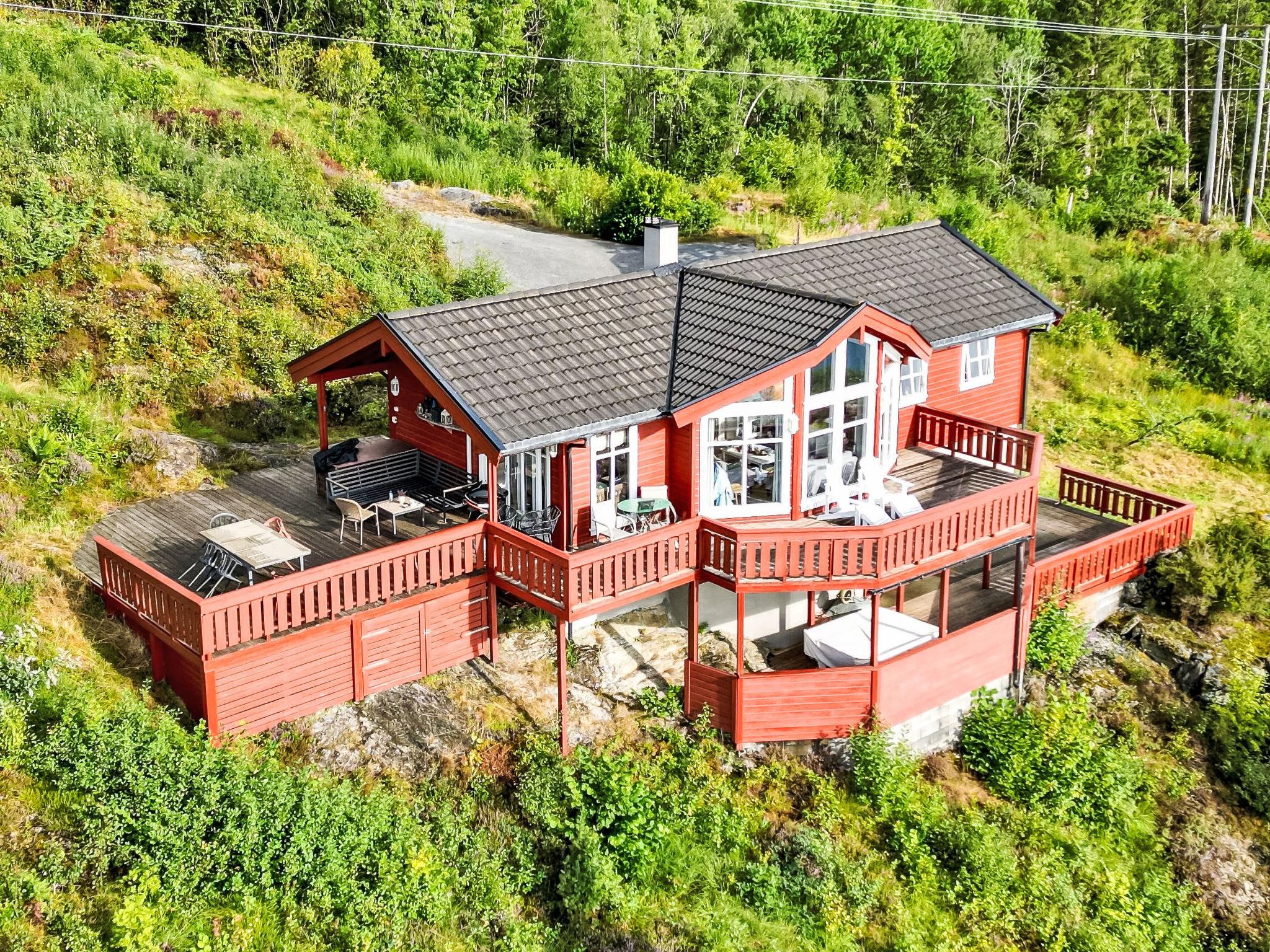 "Elistova", 5-Zimmer-Haus 145 m2 auf 2 Stockwerken. Objekt geeignet für 8 Erwachsene + 2 Kinder. Komfortabel und gemütlich eingerichtet: Wohn-/Esszimmer mit Schwedenofen, Esstisch, Sat-TV, CD und DVD. Ausgang zur Terrasse. 1 Zimmer mit 1 Doppelbett (160 cm, Länge 200 cm). 2 Zimmer, jedes Zimmer mit 1 x 3 Etagenbetten (120 cm, Länge 200 cm). 1 Zimmer mit 1 Doppeldiwanbett (140 cm, Länge 200 cm). Offene Küche (Backofen, Geschirrspüler, 4 Glaskeramikplatten, Toaster, Wasserkocher, Mikrowelle, Tiefkühler, elektrische Kaffeemaschine). Dusche/WC, sep. WC. Unteres Geschoss: Dusche, Sauna. Warmluftheizung. Holzdielenboden. Grosse Terrasse teilweise überdacht. Terrassenmöbel, Gartengrill (mobil). Herrliche Sicht auf Onarheimsfjord. Zur Verfügung: Waschmaschine, Wäschetrockner, Babybett. Internet (WLAN, gratis). Bitte beachten: Nichtraucher-Haus. Maximal 2 Haustiere/Hunde erlaubt. Rauchmelder, Feuerlöscher. Gefriertruhe ca. 120 l. 924531169