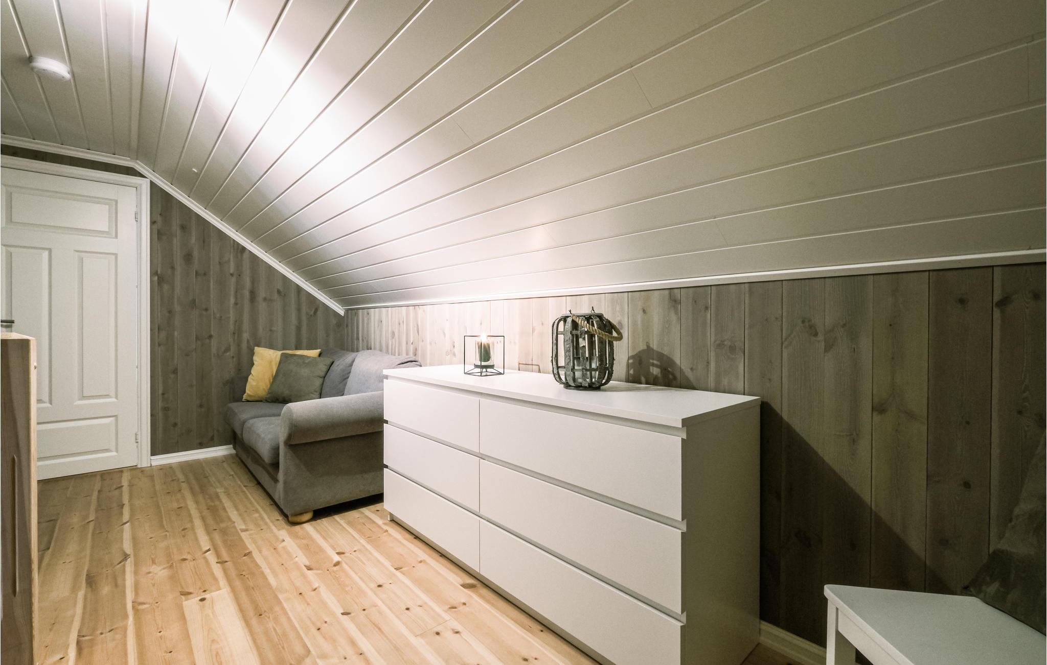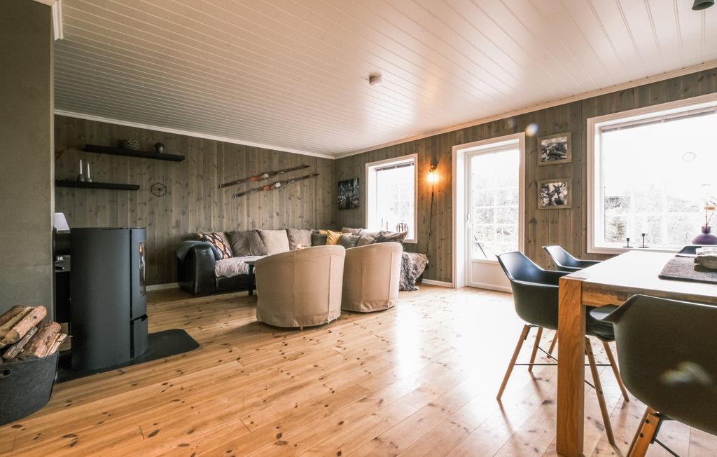 Das Haus ist warm und einladend eingerichtet. Es hat eine offene Wohnzimmer- und Küchenlösung und große Fenster, die viel Tageslicht hereinlassen und einen schönen Blick auf die Umgebung bieten.