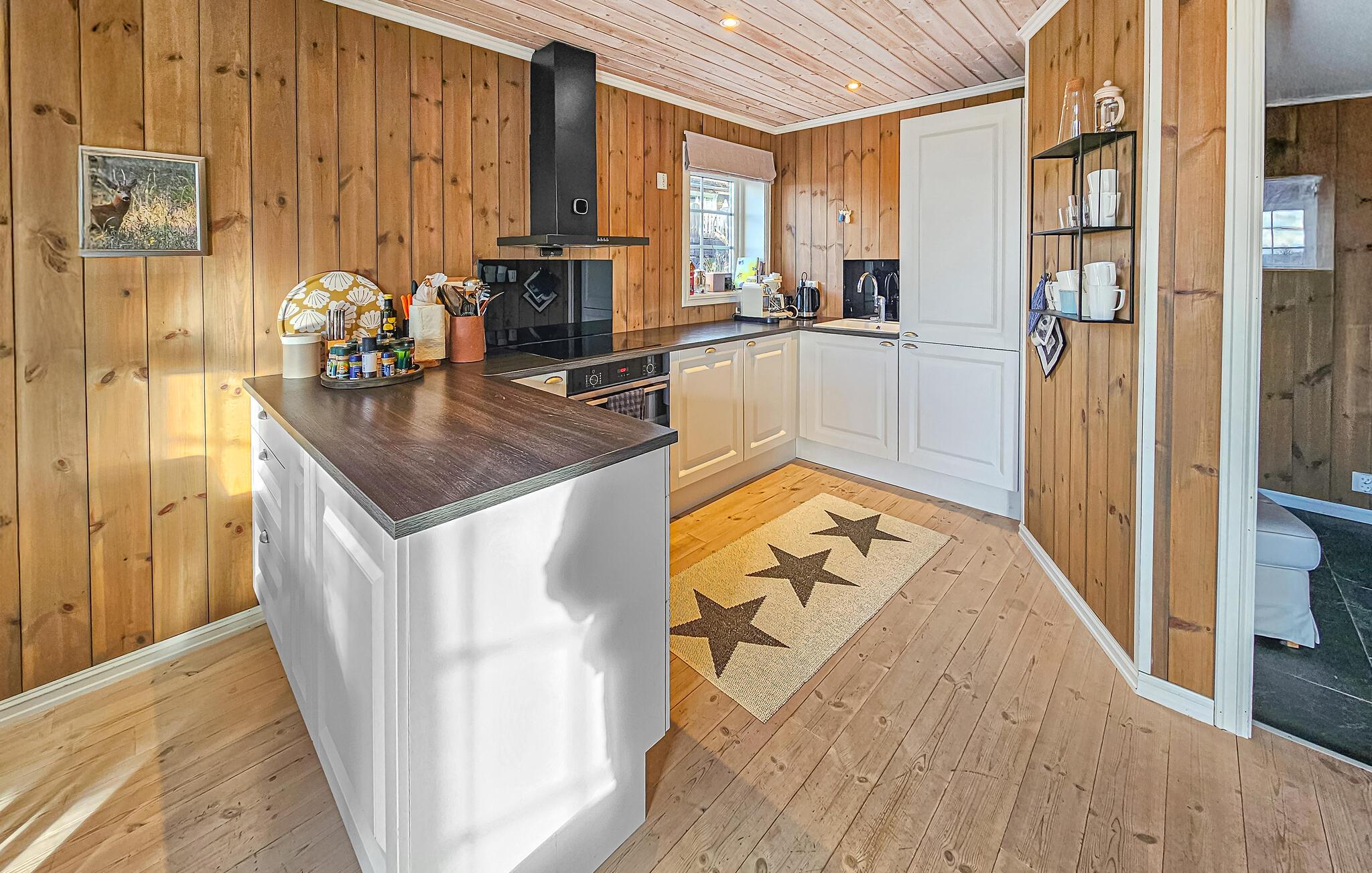 Genießen Sie Ihren Urlaub in dieser stilvollen Hütte, die Gemütlichkeit, Komfort und nordisches Design harmonisch vereint. Umgeben von frischer Bergluft und sanfter Stille finden Sie hier den idealen Ort für Erholung und aktive Tage in der Natur. Entspannen Sie auf den großen Sofas am Kaminofen und blicken Sie durch die Panoramafenster hinaus in die Natur. Die Holzwände und hellen Böden schaffen eine natürliche Atmosphäre, die Geborgenheit vermittelt. Kochen Sie in der modernen Küche mit Kochinsel und viel Platz und genießen Sie Ihre Mahlzeiten am Esstisch mit Blick auf die Berge.