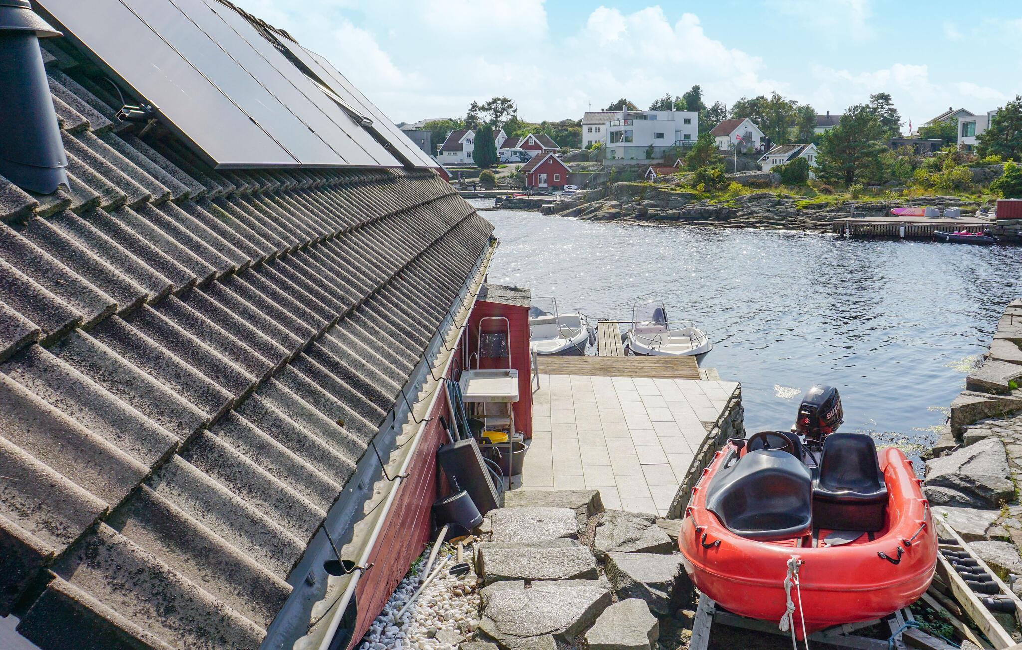 Genießen Sie dieses geschmackvoll eingerichtete Häuschen in Søgne, das Ihnen den perfekten Rückzugsort am Wasser bietet.