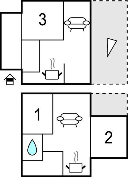 Badezimmer (nr. 1) - WC. Warmes und kaltes Wasser. Dusche