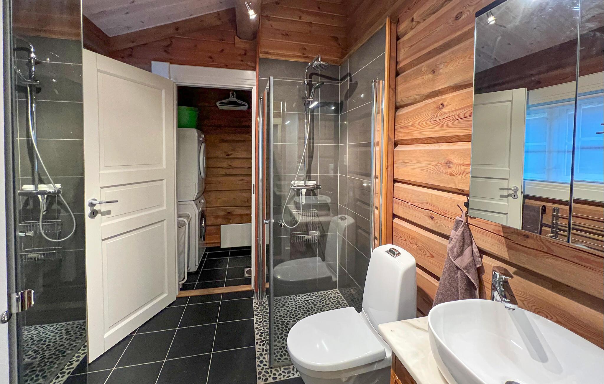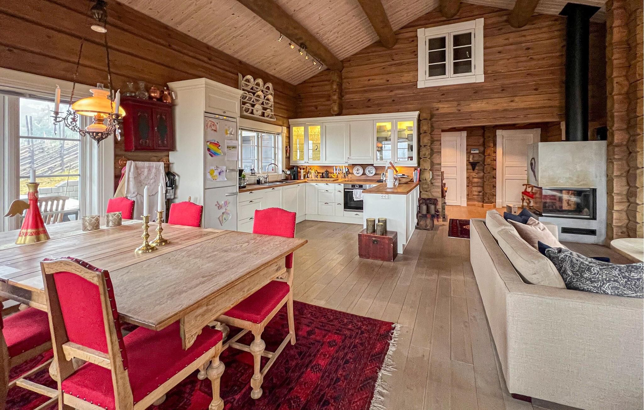 Dieses attraktiv gelegene Ferienhaus im Zentrum von Sjusjøen bietet Ihnen sowohl im Winter als auch im Sommer ideale Tourmöglichkeiten. Beginnen Sie Ihren Morgen mit einer Tasse Kaffee auf der gemütlichen Terrasse, von der aus Sie die friedliche Landschaft bewundern können. Verbringen Sie gemütliche Stunden im geräumigen Wohnzimmer vor dem knisternden Kaminofen. Die urigen Holzverkleidungen und die komfortablen Möbel schaffen eine warme, einladende Atmosphäre. Nutzen Sie den offenen Essbereich für gemeinsame Mahlzeiten und erleben Sie unvergessliche Abende bei Kerzenschein und guten Gesprächen. Die gut ausgestattete Küche lädt dazu ein, nordische Gerichte zuzubereiten und das Kochen zu einem entspannten Vergnügen zu machen. Genießen Sie zum Abschluss des Tages einen wohltuenden Saunagang.