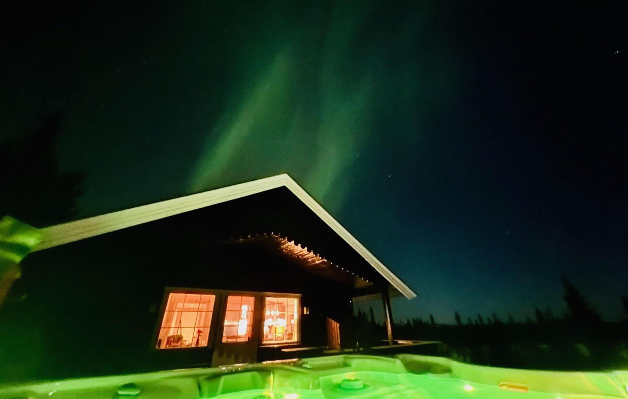 Treten Sie hinaus und atmen Sie die klare Luft ein. Entfachen Sie den Grill oder entspannen Sie im warmen Außenwhirlpool und beobachten Sie das eindrucksvolle Spektakel der Nordlichter.