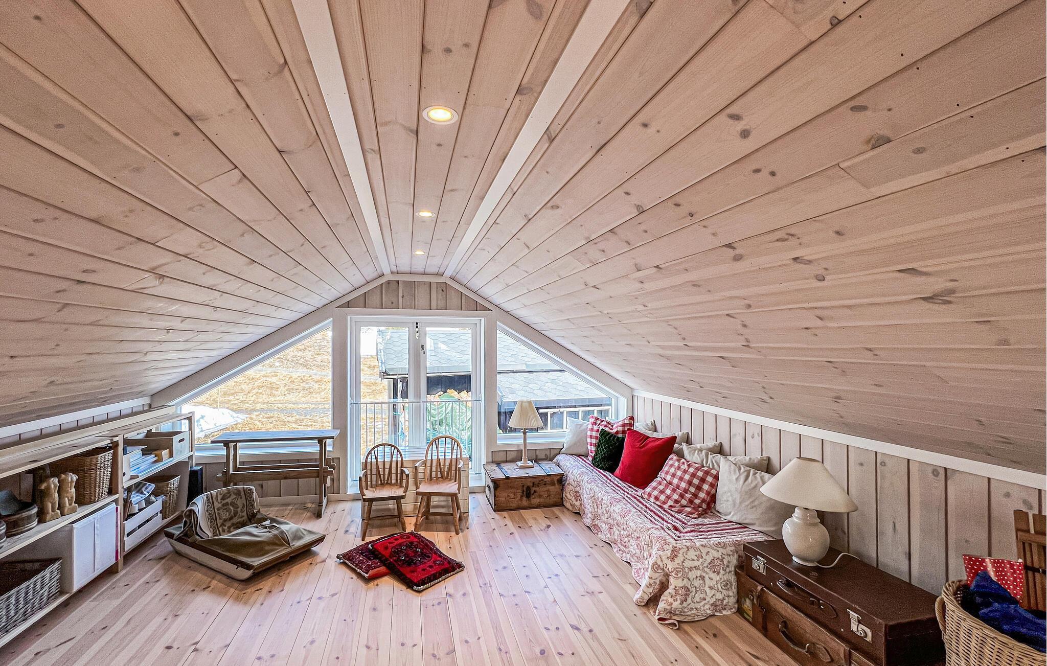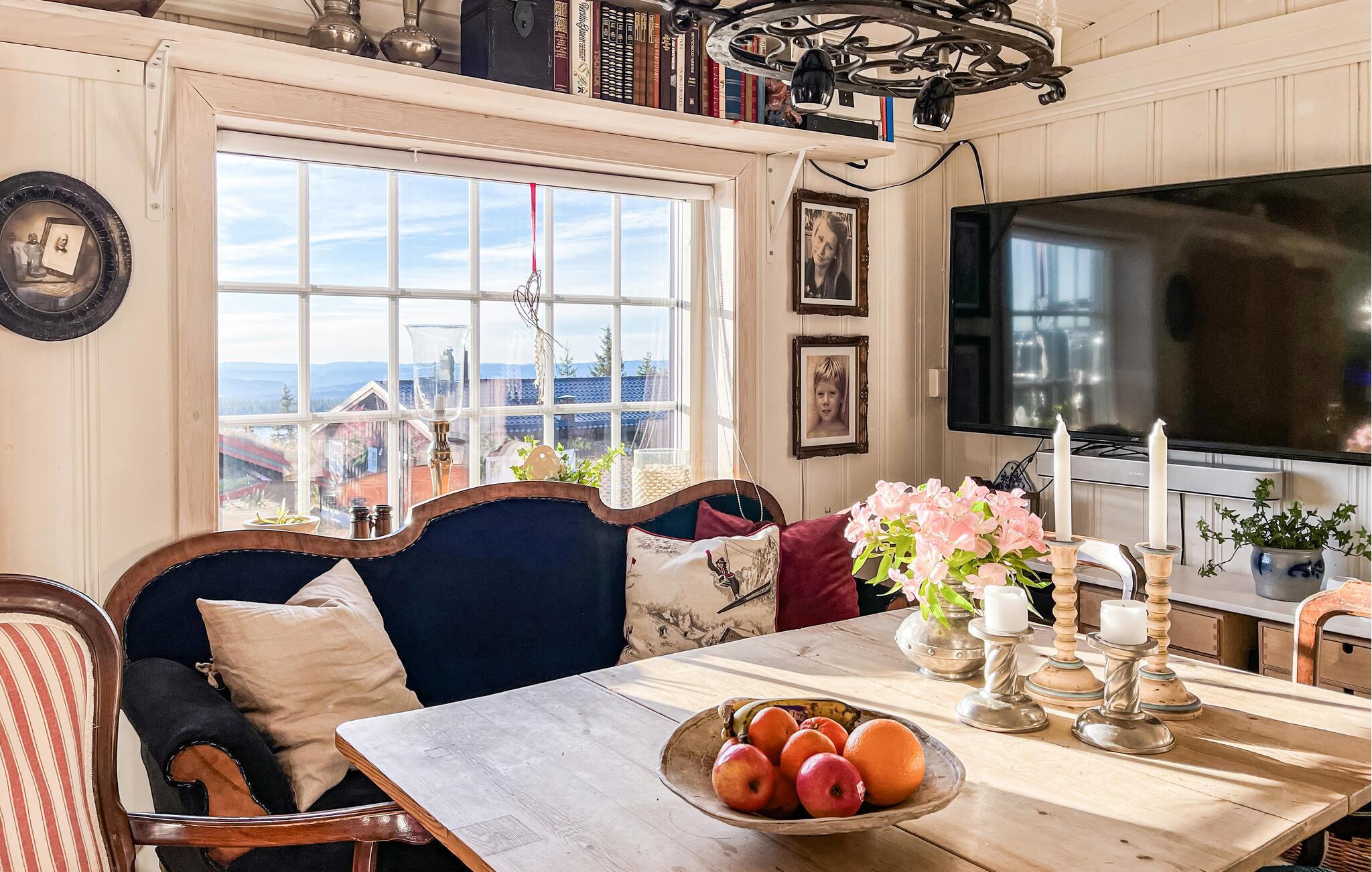 Verbringen Sie erholsame Urlaubstage in diesem gemütlichen Ferienhaus unweit des Sees Sjusjøen. Atmen Sie tief durch, lassen Sie den Alltag hinter sich und starten Sie entspannt in den Tag. Gönnen Sie sich den ersten Kaffee am urigen Esstisch oder auf dem weichen Sofa im Obergeschoss mit Blick auf die friedliche Umgebung. Im Wohnbereich sorgt ein Kaminofen für wohlige Wärme, während Holzverkleidungen und eine geschmackvolle Einrichtung ein heimeliges Ambiente schaffen, das zum Verweilen einlädt, zwei Kamine sorgen dafür, dass Sie das Haus in der kühlen Jahreszeit aufwärmen können.