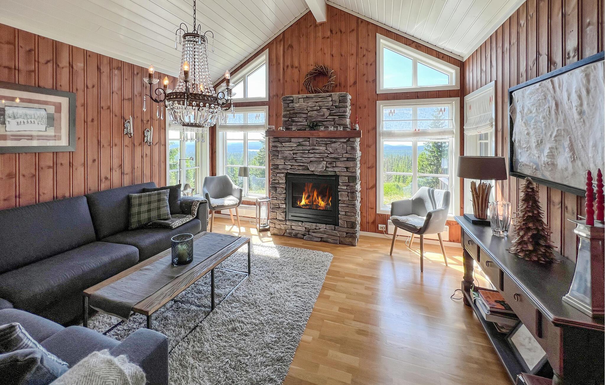 Treten Sie schon morgens mit einer Tasse duftenden Kaffees auf die großzügige Terrasse. Von hier haben Sie einen fantastischen Blick über ein tiefgrünes Panorama mit Fichten, Wiesen und vereinzelten Hütten mit grasgedeckten Dächern. Verbringen Sie hier entspannte Nachmittage beim Lesen oder Plaudern und vergessen Sie ganz einfach die Zeit um sich herum.