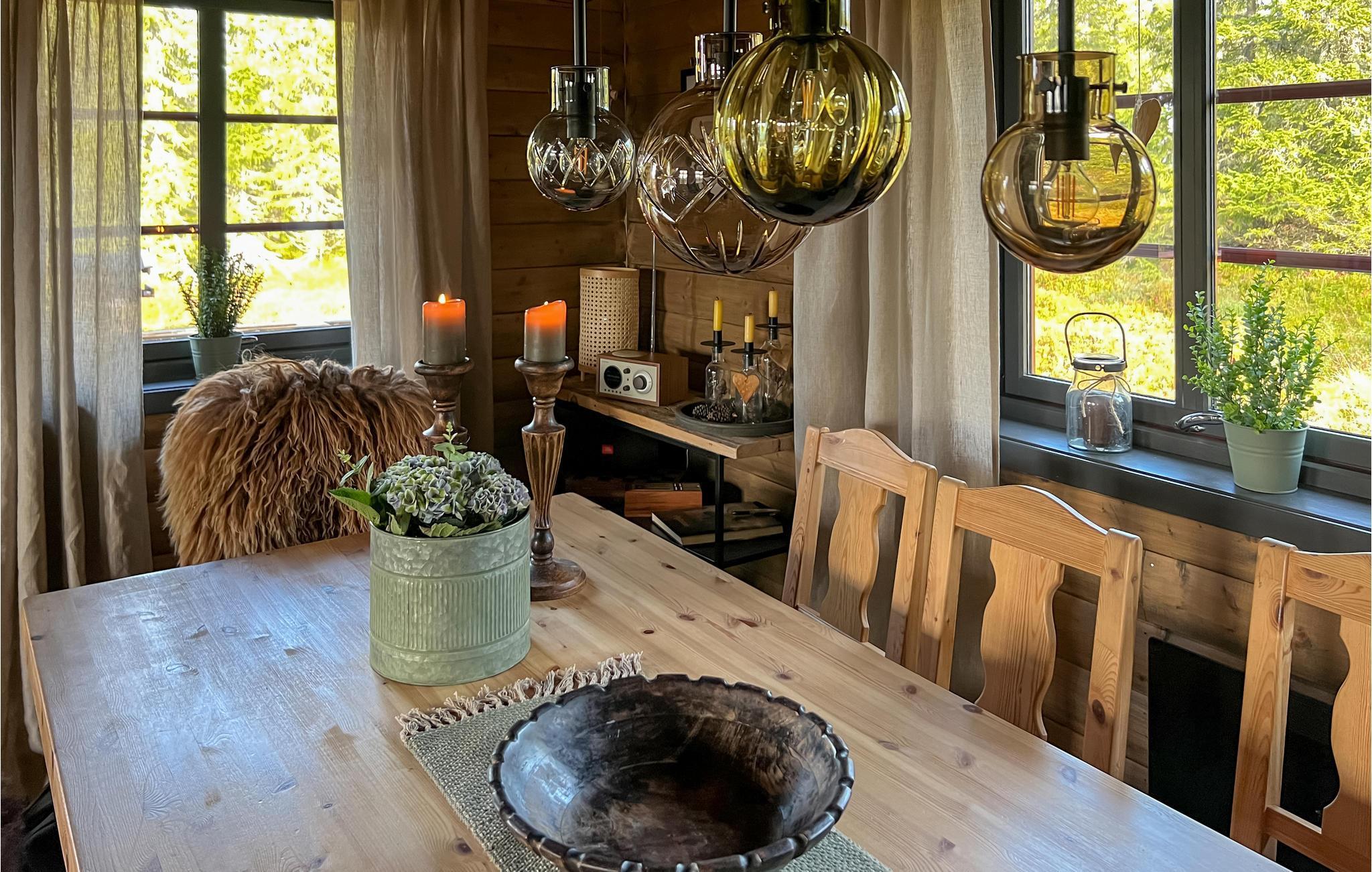 Das einladende Haus mit Grasdach empfängt Sie im beliebten Urlaubsgebiet Sjusøen. Genießen Sie in den gemütlichen Räumen mit neo-rustikalem Charme eine erholsame Auszeit mit Ihren Lieben. Freuen Sie sich auf gemeinsame Mahlzeiten und unterhaltsame Spieleabende am langen Esstisch. In der Sauna können Sie nach Ihren Aktivitäten in der Natur herrlich entspannen. Nichts ist außerdem schöner als ein gemütlicher Abend am prasselnden Kaminofen.