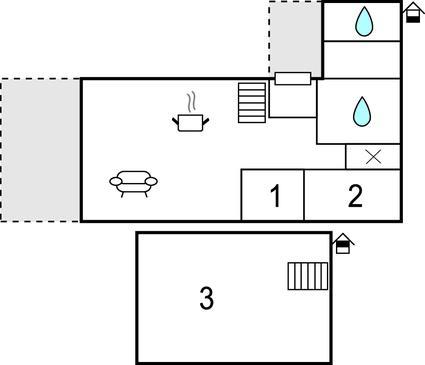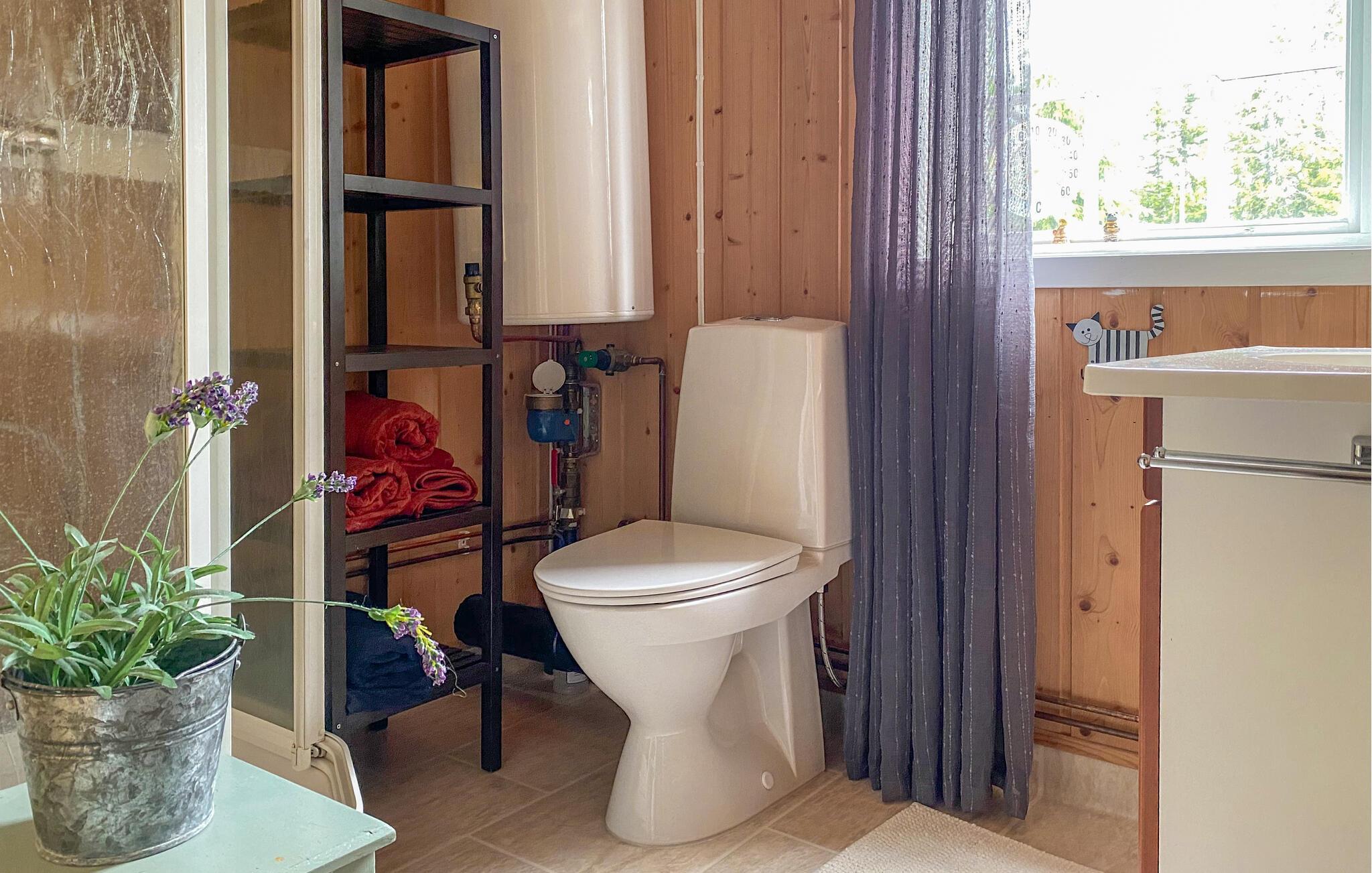 Hinweis: Die Toilette ist über die Veranda, einen Abstellraum und eine Tür zugänglich und kann für die Gäste im Nebengebäude unverschlossen bleiben.