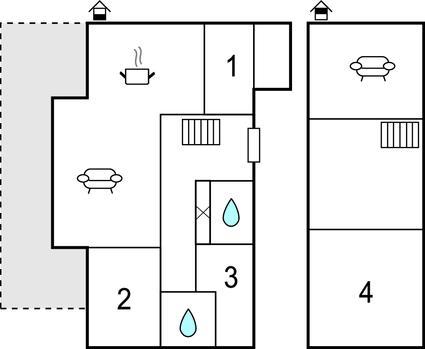 Badezimmer (nr. 1) - WC. Warmes und kaltes Wasser. Dusche