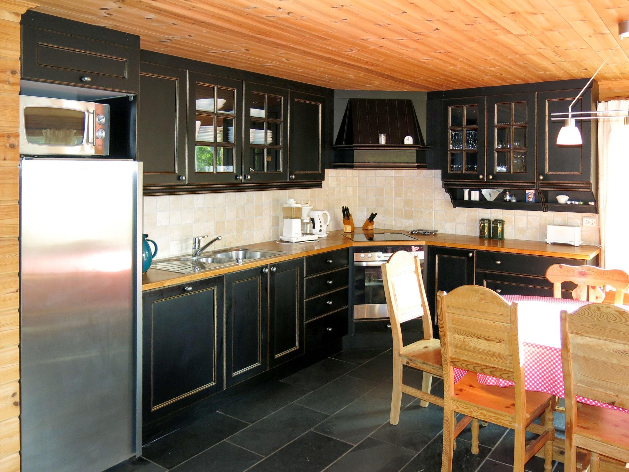 "Naudøyna", 6-Zimmer-Haus 150 m2 auf 2 Stockwerken. Teilweise abgeschrägt, komfortabel und mit viel Holz eingerichtet: Wohnzimmer mit Panoramafenster mit offenem Kamin, Esstisch und Sat-TV. Ausgang zur Terrasse. 1 Zimmer mit 1 Doppelbett (150 cm, Länge 200 cm). Offene Küche (Backofen, Geschirrspüler, 4 Glaskeramikplatten, Toaster, Wasserkocher, Mikrowelle, Tiefkühler, Grill, elektrische Kaffeemaschine) mit Esstisch. Dusche/WC, Sauna. E-Heizung. Obergeschoss: 3 Doppelzimmer, jedes Zimmer mit 1 Doppelbett (150 cm, Länge 200 cm). 1 Zimmer mit 2 Betten (75 cm, Länge 200 cm). Dusche/WC. E-Heizung. Grosse Terrasse. Terrassenmöbel, Gartengrill (mobil), Abstellkammer. Sehr schöne Sicht auf den See. Zur Verfügung: Waschmaschine, Sauna, Kinderhochstuhl, Babybett, Holz (gratis). Bitte beachten: Nichtraucher-Haus. Rauchmelder, Feuerlöscher. Gefriertruhe ca. 200 l. 924531169
