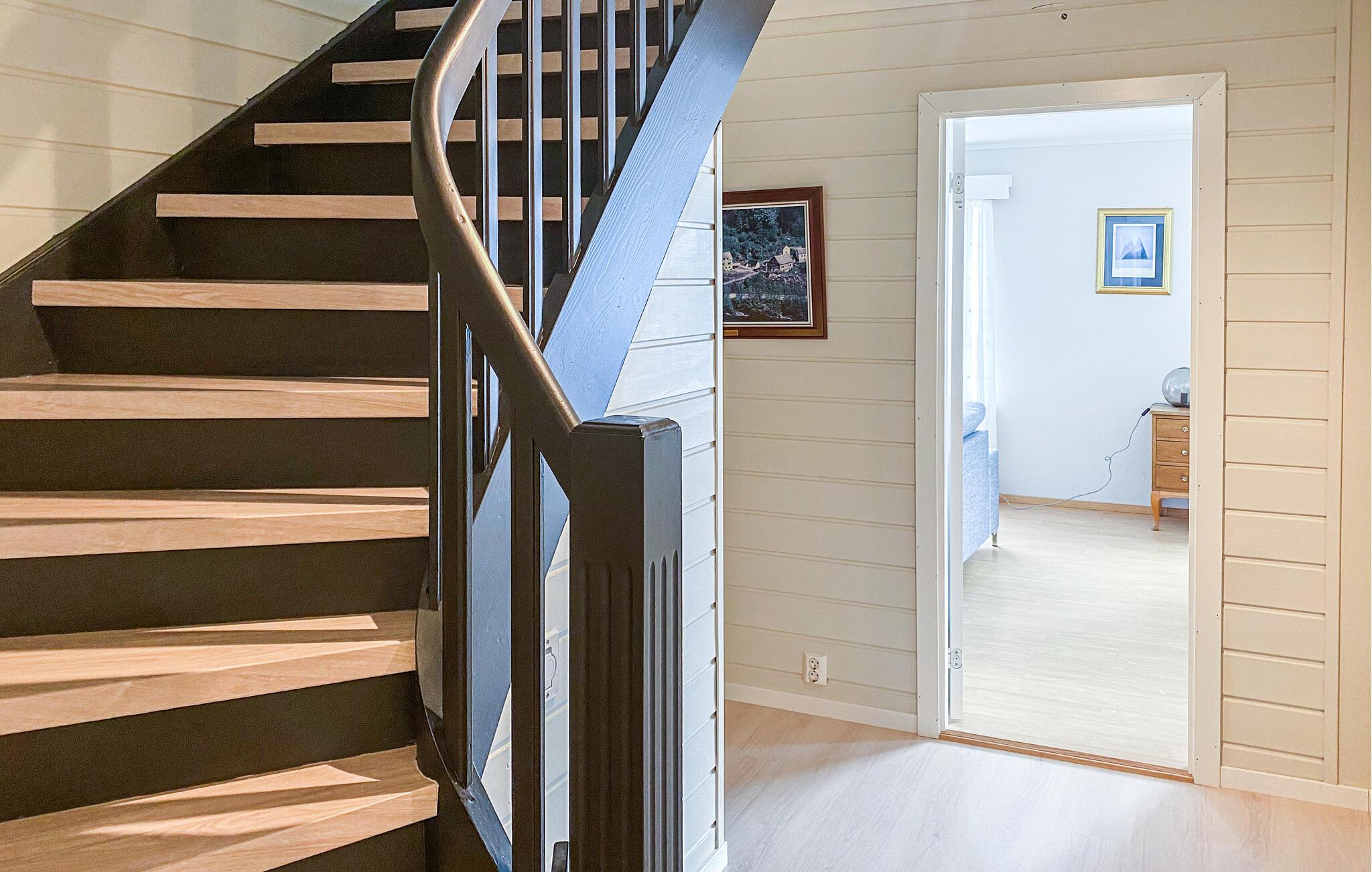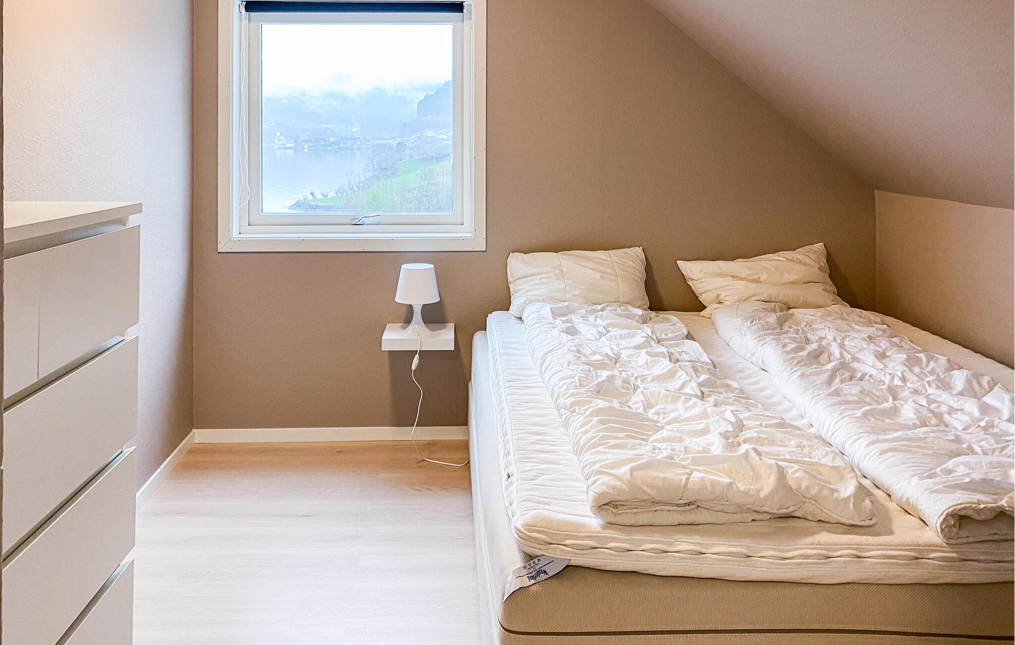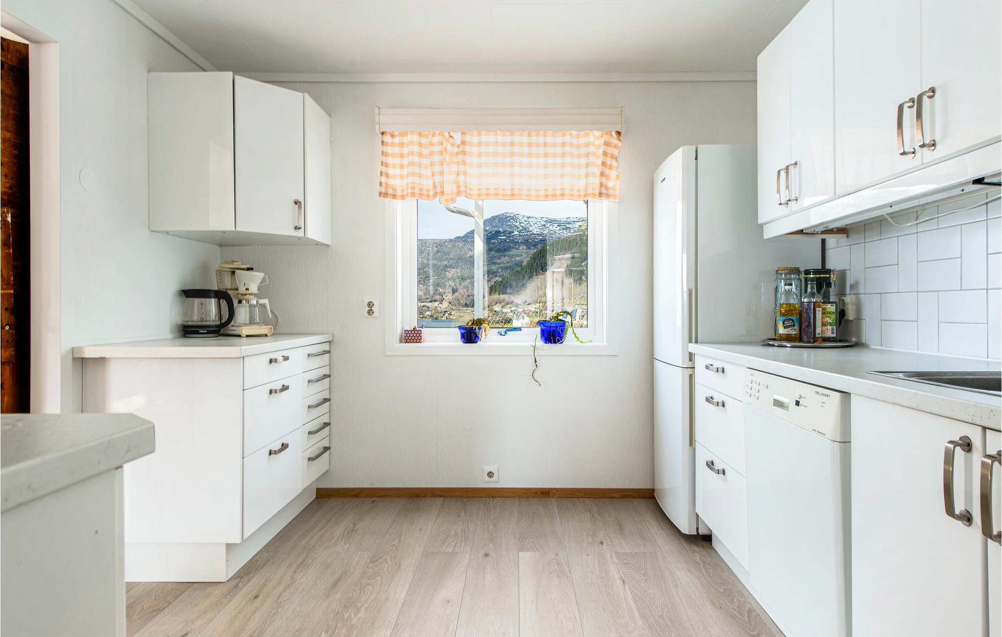 Das Ferienhaus mit Platz für 10 Personen bietet eine heimelige Atmosphäre und einen fantastischen Blick über den Fjord und die Berge. Hier gibt es Platz für die ganze Familie.