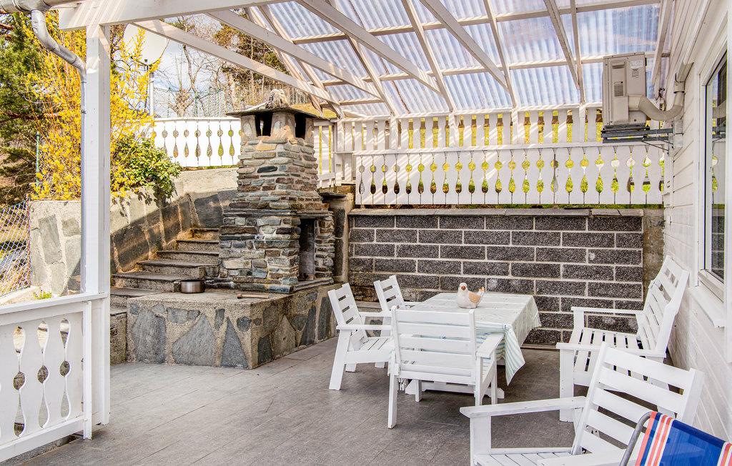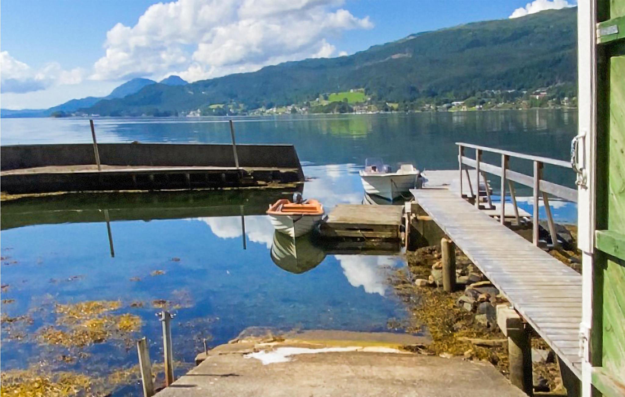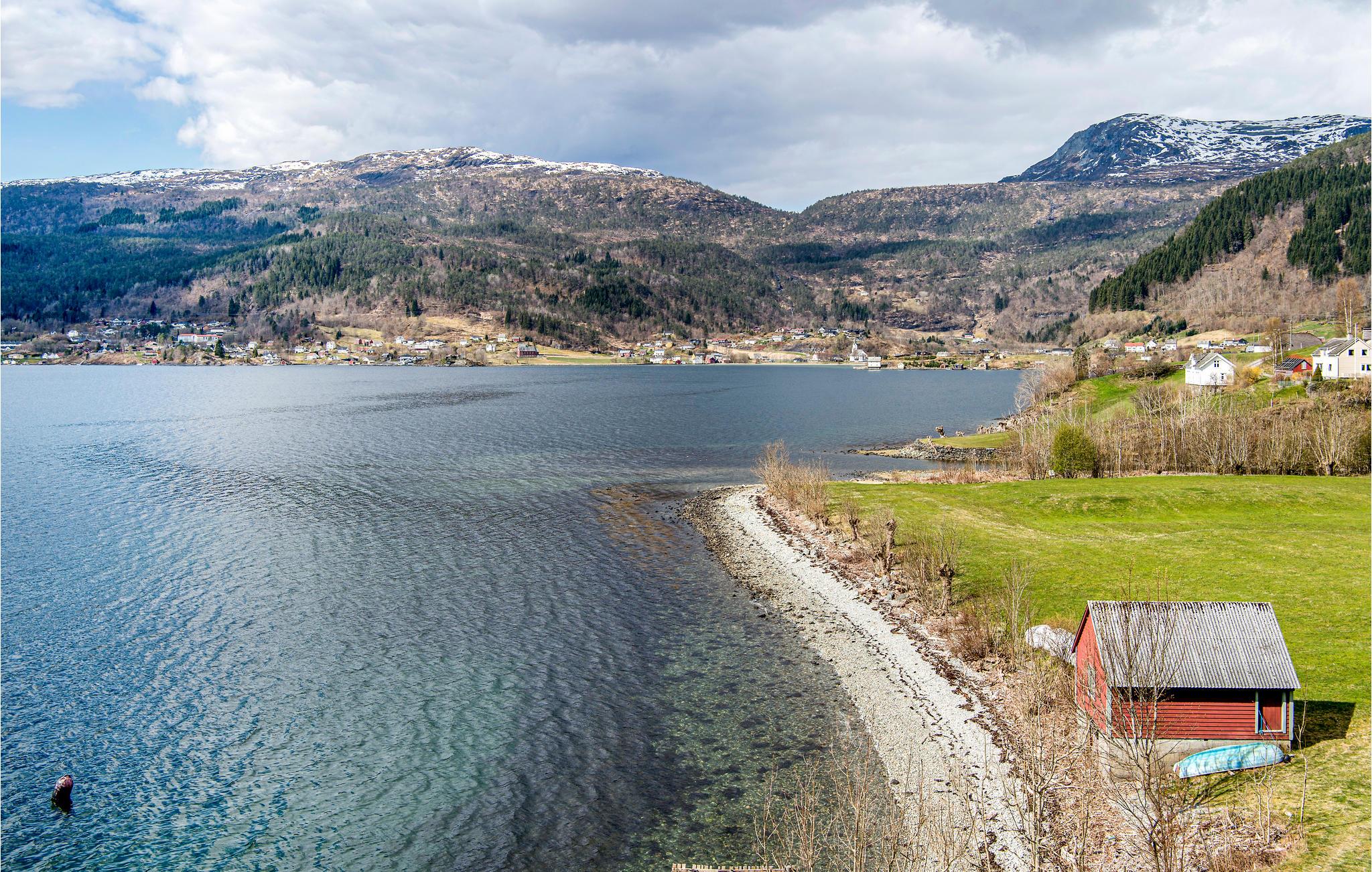 An schönen Tagen können Sie auf der Terrasse sitzen und auf den glitzernden Fjord blicken. Genießen Sie Ihre Mahlzeiten beim Rauschen des Fjords. Eine Straße führt zum privaten Bootshaus und Steg.