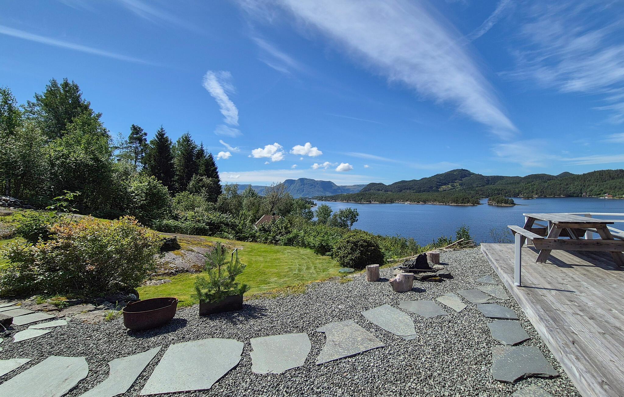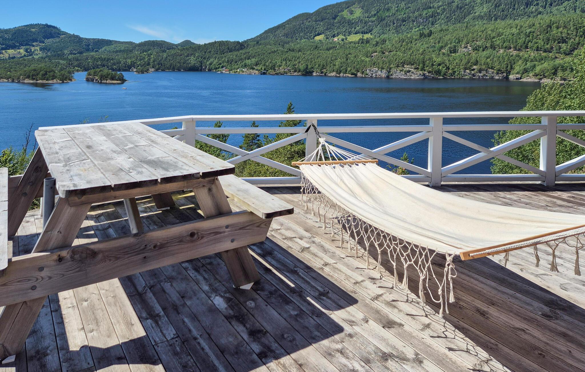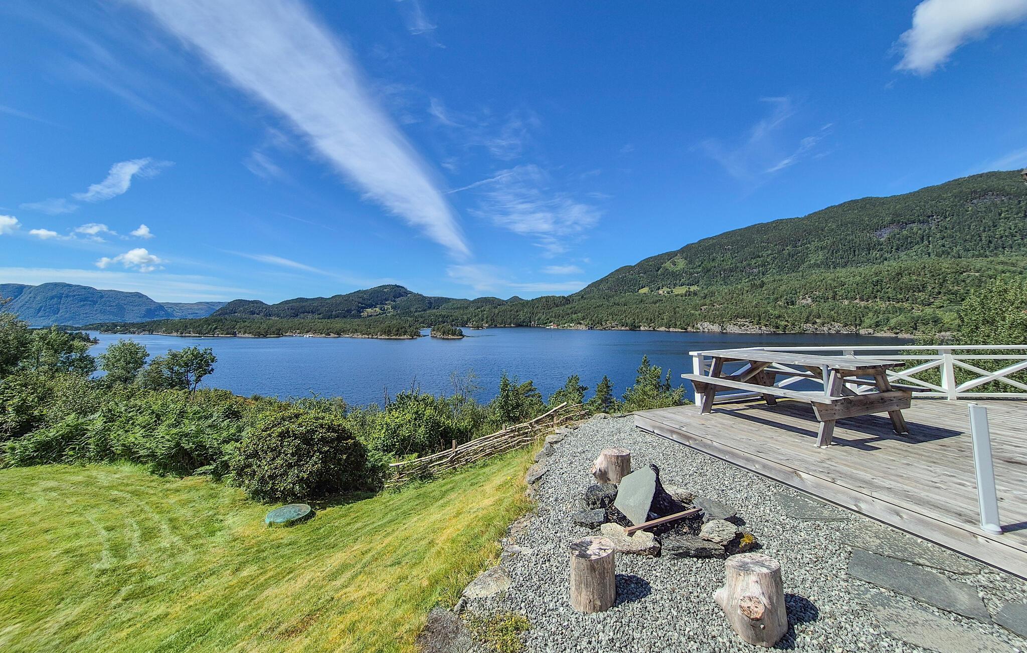 Auf der Terrasse können Sie nahe der Natur im Freien entspannen und die fantastische Aussicht voll auskosten, ein Badesteg lädt zu Erfrischungen im Fjord ein.