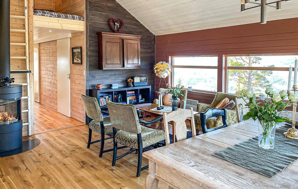 Eingebettet in die idyllische Landschaft bietet dieses einladende Ferienhaus einen Rückzugsort voller Ruhe und Privatsphäre. Genießen Sie gesellige Stunden am großen Esstisch, während in der modernen Küche köstliche Mahlzeiten entstehen. Lassen Sie den Tag in der warmen Sofaecke ausklingen, wo das Knistern des Kamins eine wohlige Atmosphäre schafft und den Raum in sanftes Licht taucht. Spielen Sie ein spannendes Brettspiel oder entspannen Sie mit einem guten Buch.