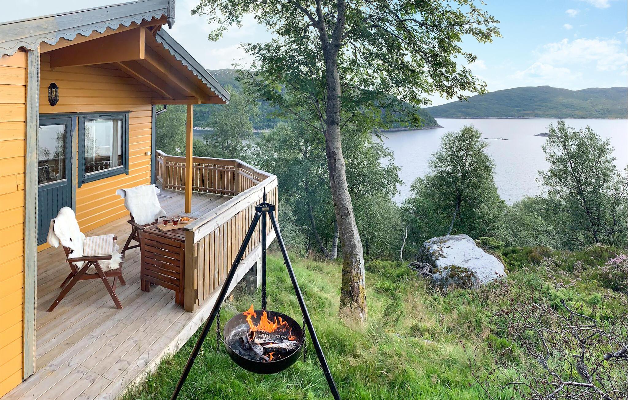 Die weitläufige Terrasse bietet eine atemberaubende Aussicht auf den Fjord und die umliegenden Berge. Genießen Sie Ihren Morgenkaffee an der frischen Luft, machen Sie es sich in einem Liegestuhl bequem oder grillen Sie am offenen Feuer. Spazieren Sie direkt von der Hütte aus los und erkunden Sie die beeindruckende Natur, die Sie umgibt.