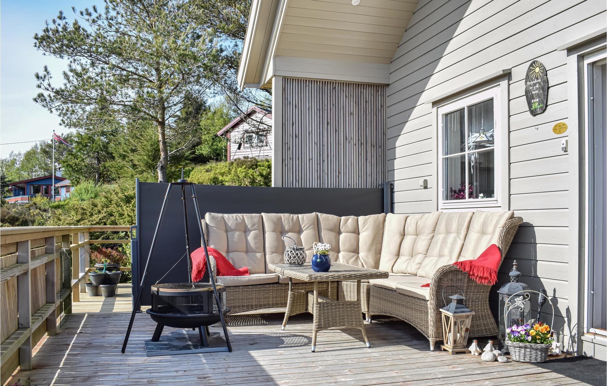Vom Wohnzimmer aus haben Sie Zugang zu einer großen Terrasse, auf der Sie schöne Ferien im Freien verbringen können. Auf der Terrasse gibt es viel Platz für Kaffee am Morgen und Abendessen im Freien.