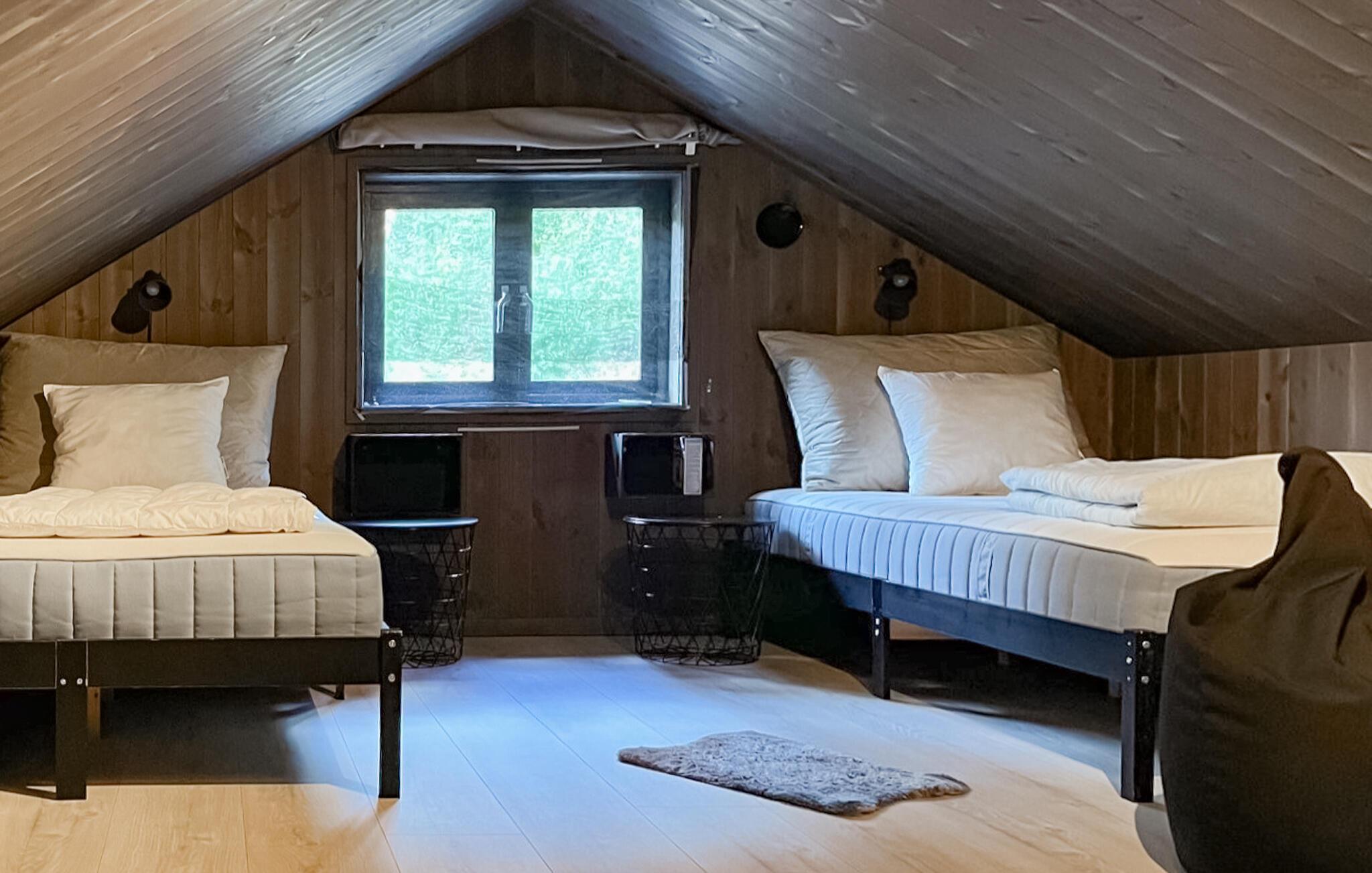Offener Schlafboden - 2 Schlafmöglichkeiten. (Einzelbett(en)).