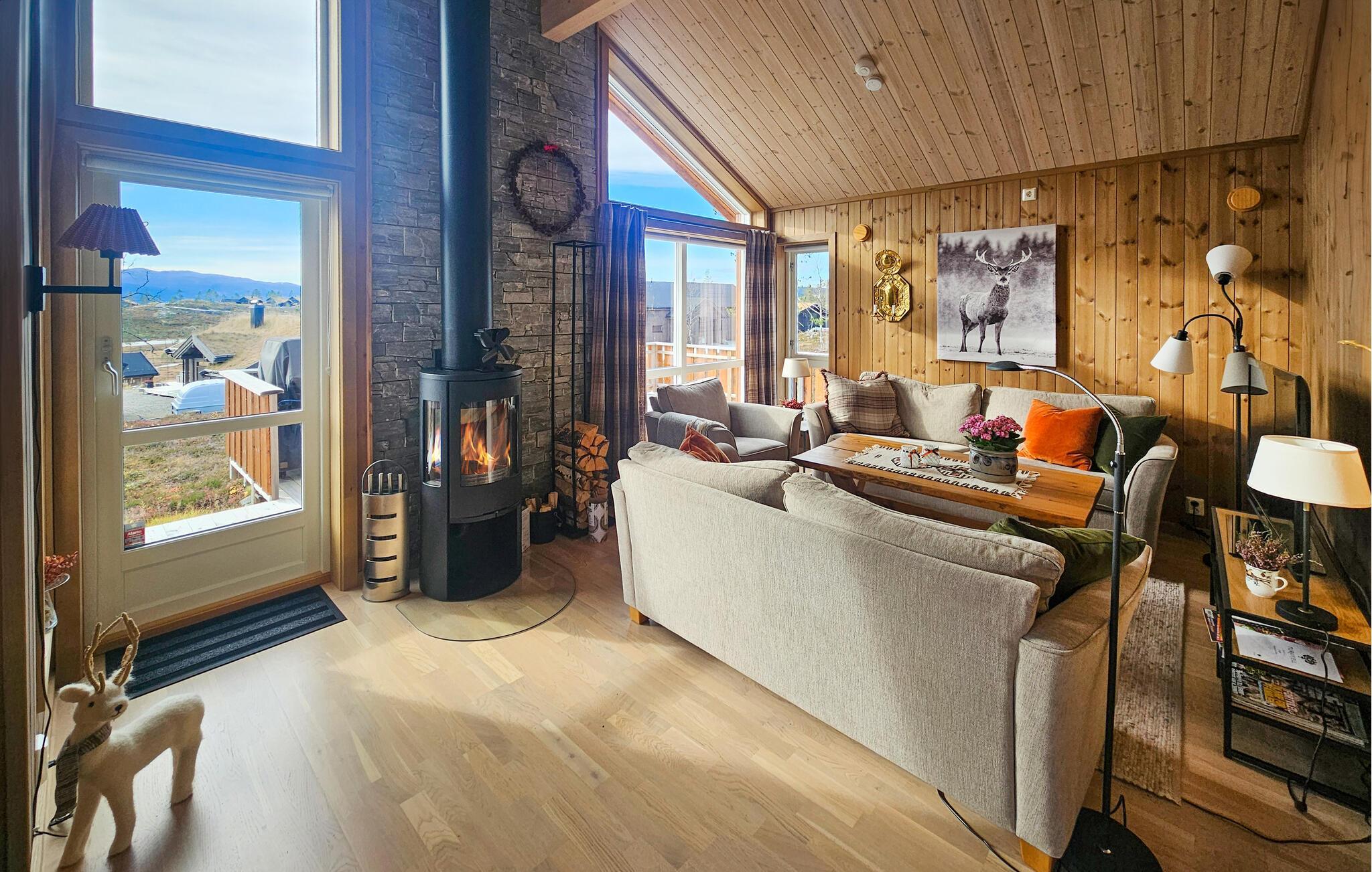 Diese behagliche Hütte auf Turufjell vereint modernen Komfort mit rustikalem Charme und bietet Ihnen das ideale Zuhause auf Zeit, während Sie mit Freunden oder der Familie bei einem erholsamen Aktivurlaub den Alltag hinter sich lassen. Freuen Sie sich auf entspannte Mahlzeiten am einladenden Esstisch, lauschen Sie bei ruhigen Lesestunden dem leisen Knistern des Kaminofens und verbringen Sie fröhliche Spieleabende im gemütlichen Wohnzimmer.