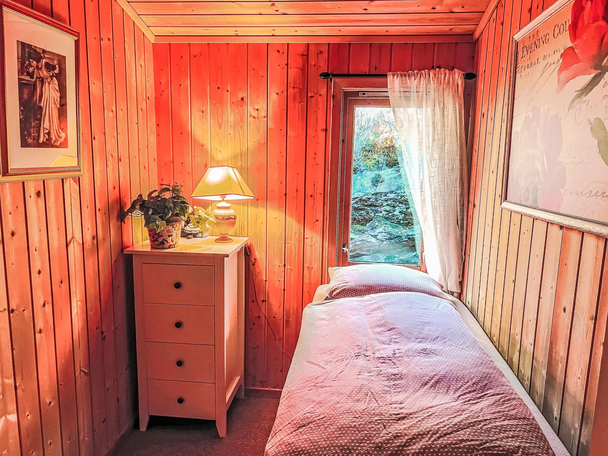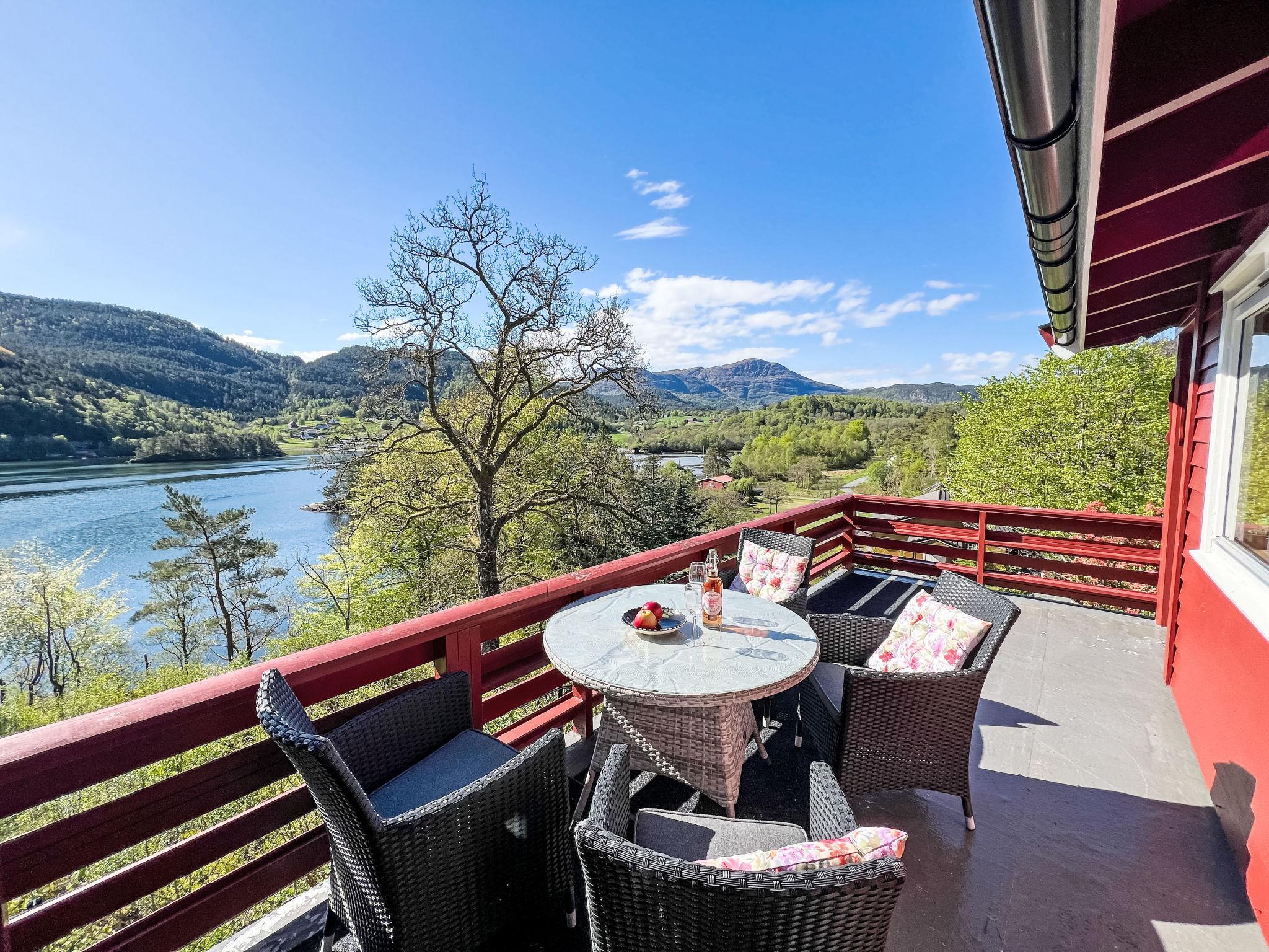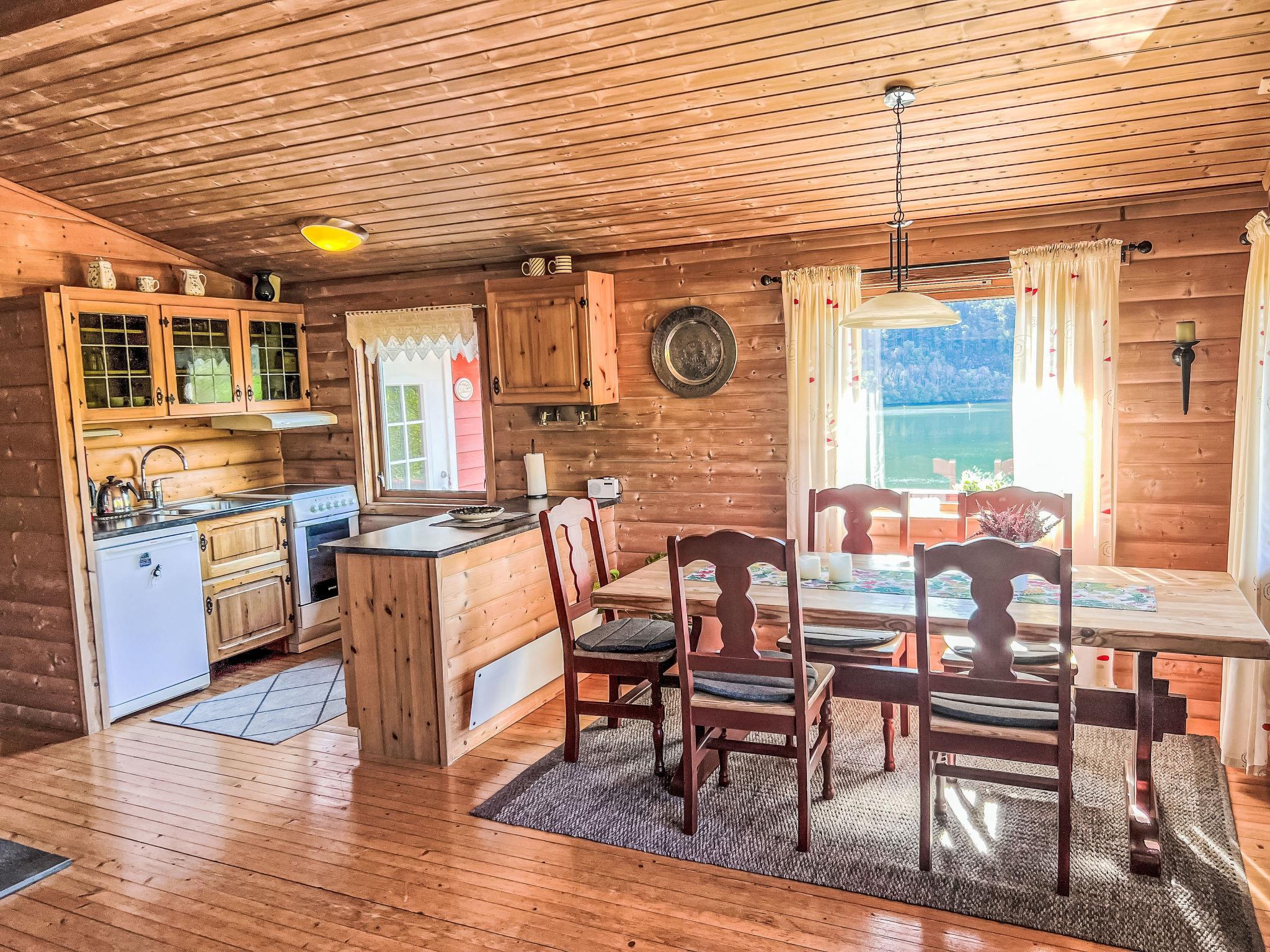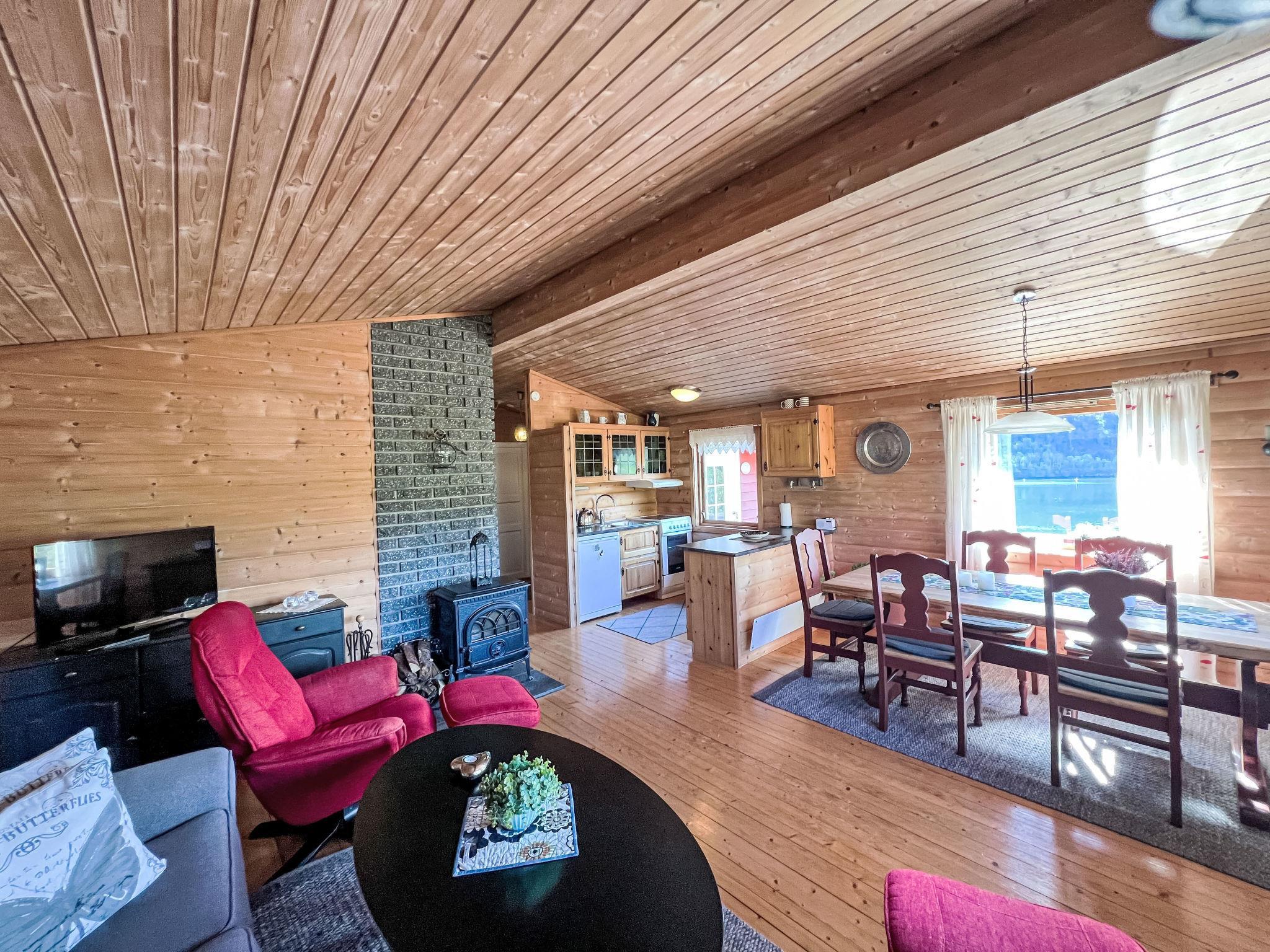 "Tussebu", 5-Zimmer-Haus 63 m2. Geschmackvoll und gemütlich eingerichtet: Wohn-/Esszimmer mit Schwedenofen, Esstisch, TV und Radio. Ausgang zum Balkon. 1 Zimmer 5 m2 mit 1 Bett (90 cm, Länge 200 cm). 1 Zimmer 7 m2 mit 1 Doppelbett (150 cm, Länge 200 cm). 1 Zimmer 5 m2 mit 1 Bett (75 cm, Länge 200 cm). Kleine, offene Küche (Backofen, 4 Glaskeramikplatten, Toaster, Wasserkocher, Tiefkühler, elektrische Kaffeemaschine). Ausgang zum Balkon. Dusche/WC. E-Heizung, Warmluftheizung. Unteres Geschoss: Gepäckraum. Holzdielenboden. Komfortable Einrichtung im Landhausstil. Grosser Balkon 20 m2, grosser Garten. Terrassenmöbel, Gartengrill (mobil), Liegestühle, Sitzplatz. Sehr schöne Panoramasicht auf das Meer, die Berge, die Landschaft und fjord. Zur Verfügung: Waschmaschine, Bügeleisen. Internet (WLAN, gratis). Bitte beachten: Nichtraucher-Haus. Maximal 1 Haustier/Hund erlaubt. Feuerlöscher. TV via casting. Hinweis: 10 Stufen bis zum Haus. 924531169