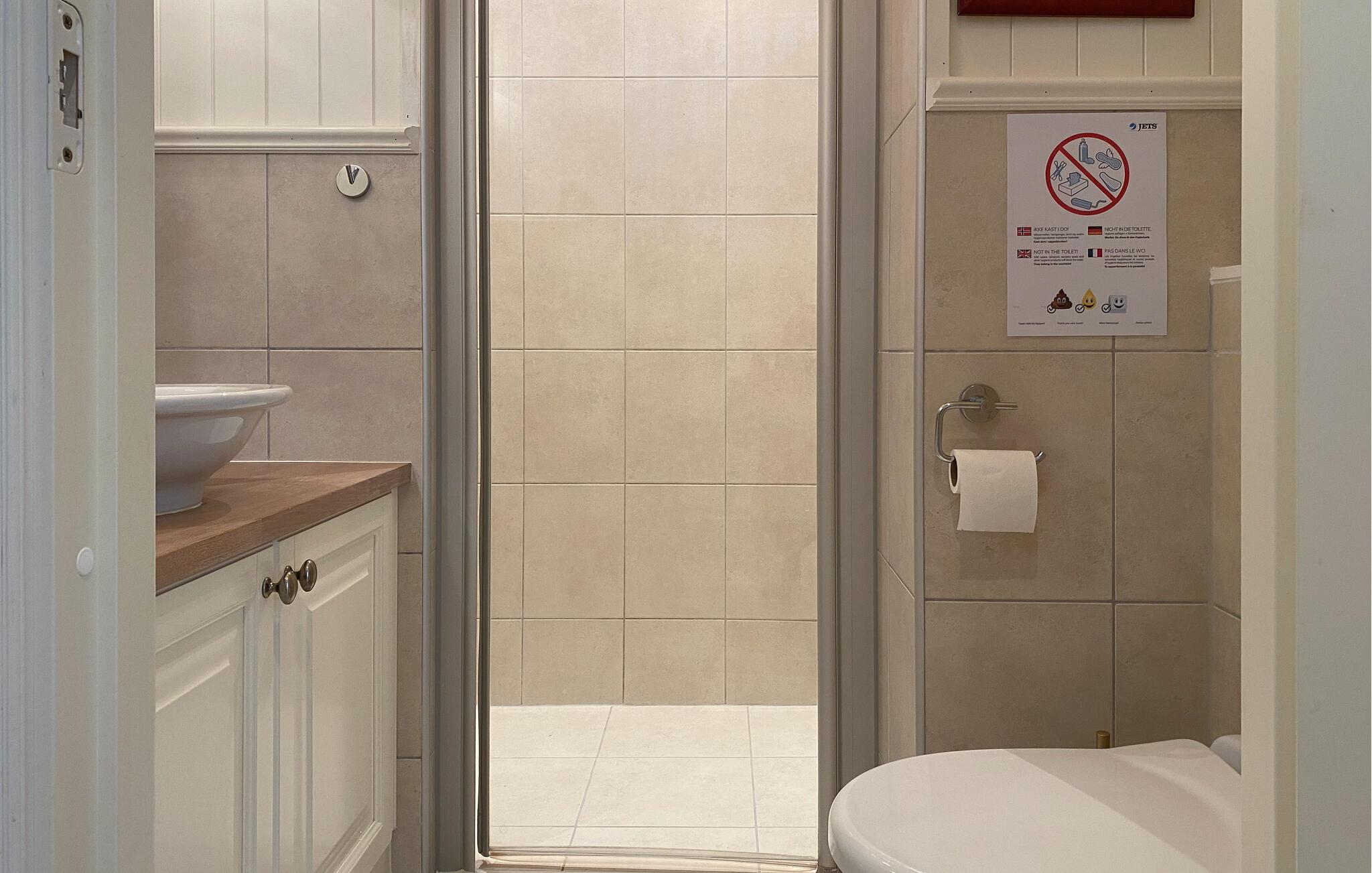 Badezimmer (nr. 2) - WC. Warmes und kaltes Wasser. Dusche