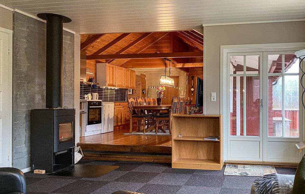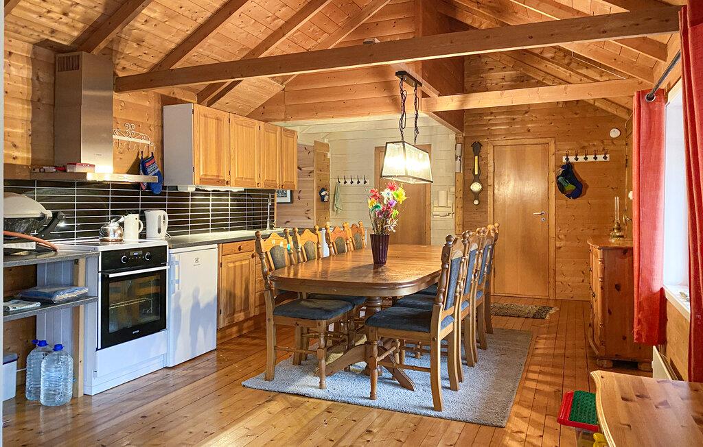 Willkommen in diesem gemütlichen Urlaubsdomizil, in dem Sie dank großer Fenster und seiner Hügellage einen wunderschönen Panoramablick auf die idyllische Naturlandschaft genießen. Veranstalten Sie fröhliche Kochabende in der geräumigen Küche und gesellige Mahlzeiten in ihrem rustikalen Ambiente. Entfachen Sie den Kaminofen und entspannen Sie auf dem gemütlichen Sofa bei einem guten Buch oder einem Film.