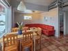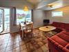 Der Wohnbereich Ihres kompakten Ferienhauses empfängt Sie mit einer Eckcouch, die zum Ausruhen nach einem aktiven Tag einlädt. Nehmen Sie am Holztisch direkt am Fenster Platz und genießen Sie beim Essen den Blick auf das Wasser. Die offene Küchenzeile ist funktional ausgestattet und bietet Ihnen die Möglichkeit, einfache Mahlzeiten selbst zuzubereiten. Lassen Sie den Abend bei einem Film ausklingen oder planen Sie Ihre nächsten Unternehmungen in entspannter Atmosphäre.