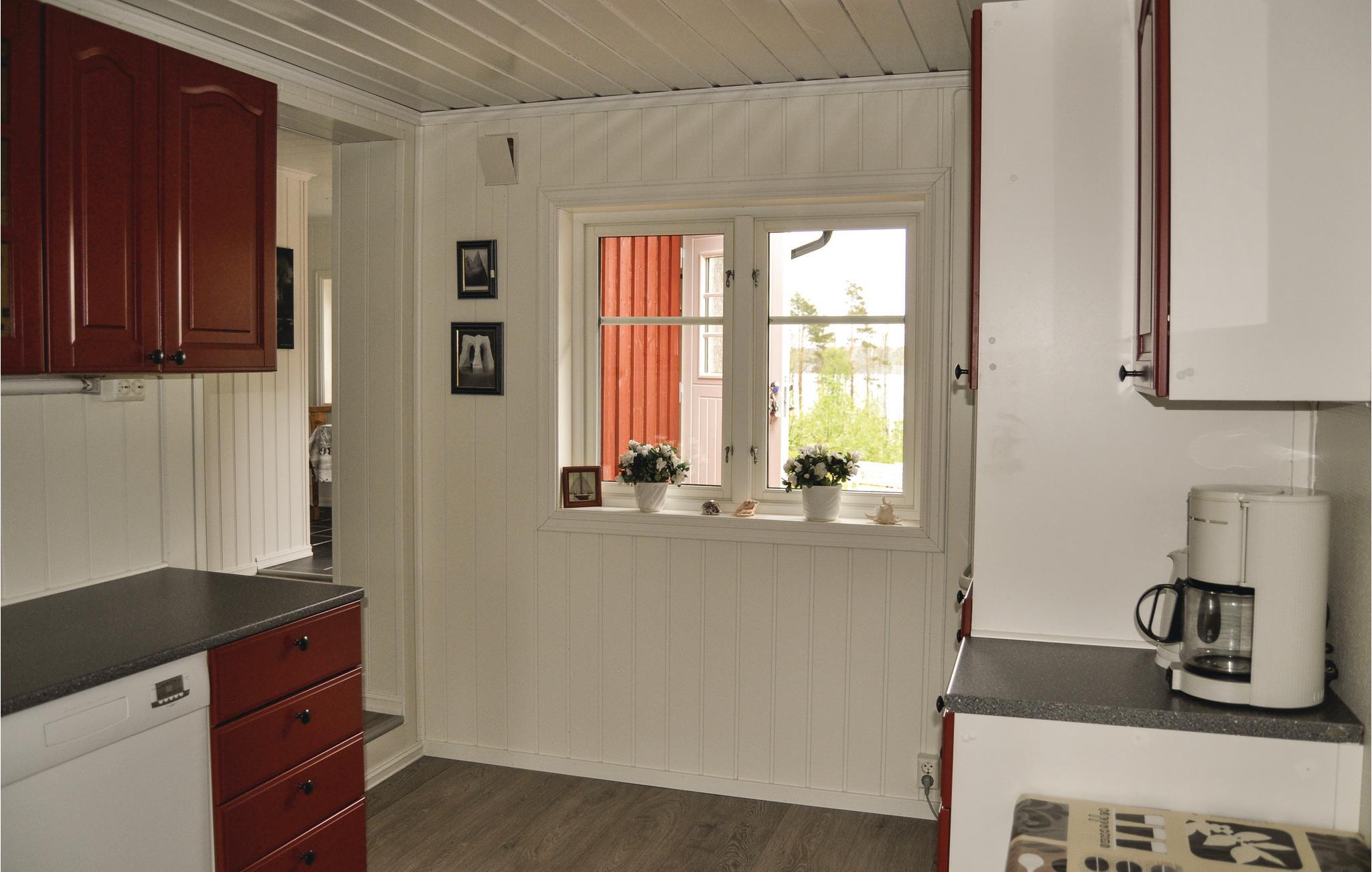 Kommen Sie an und spüren Sie die freundliche Atmosphäre dieses typisch skandinavischen Hauses. Das Holzhaus bietet eine warme Ausstrahlung und ist der ideale Rückzugsort für Familien und Naturfreunde. Treten Sie in den gemütlichen Wohnbereich ein und machen Sie es sich in der Sofaecke bequem. Nutzen Sie den großen Esstisch für gemeinsame Mahlzeiten und lange Abende mit Gesprächen oder Spielen. Die praktische Küche mit Schränken ermöglicht Ihnen, leckere Gerichte zuzubereiten. Genießen Sie den Ausblick auf die umliegende Natur direkt aus den Fenstern.