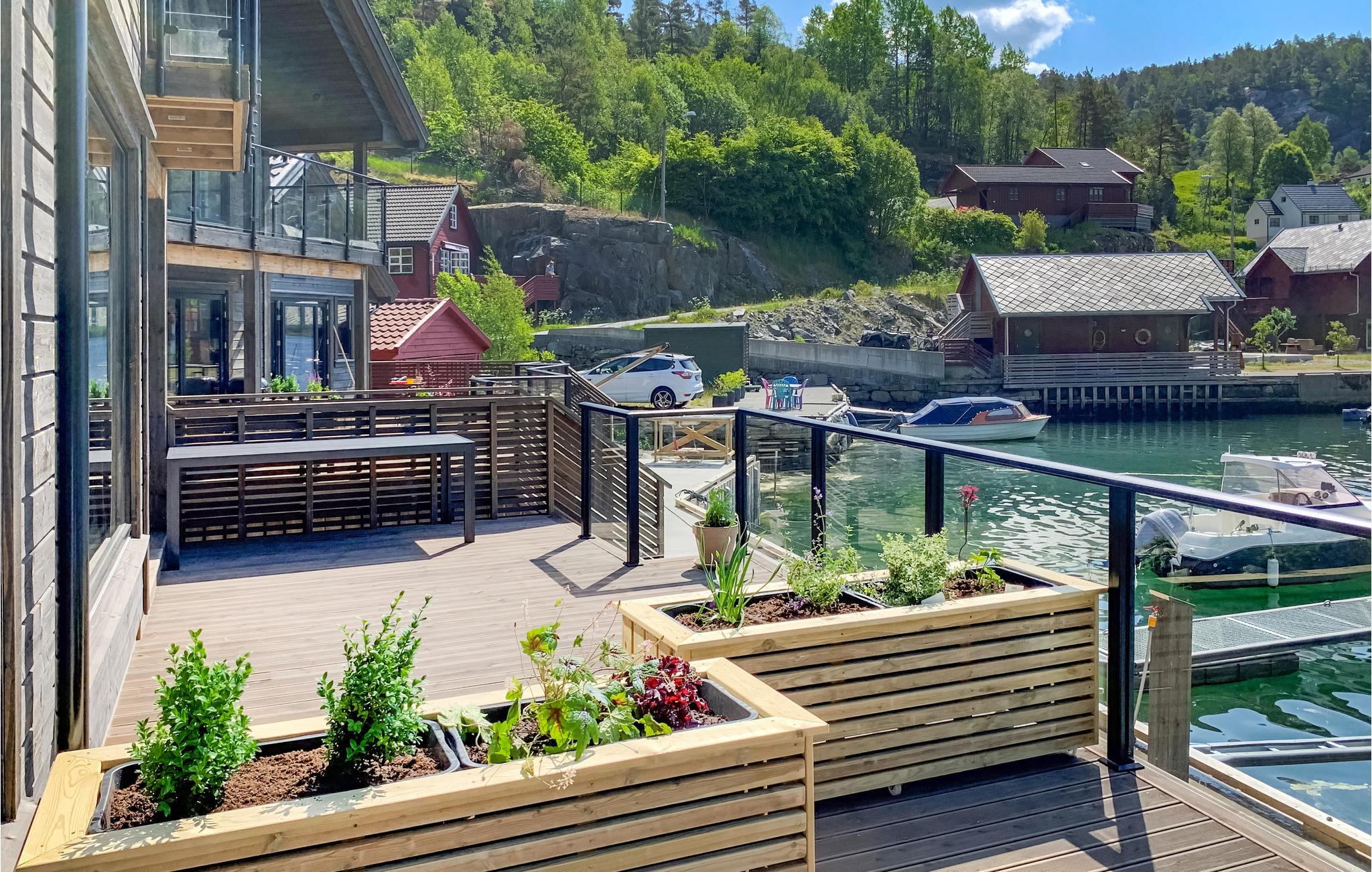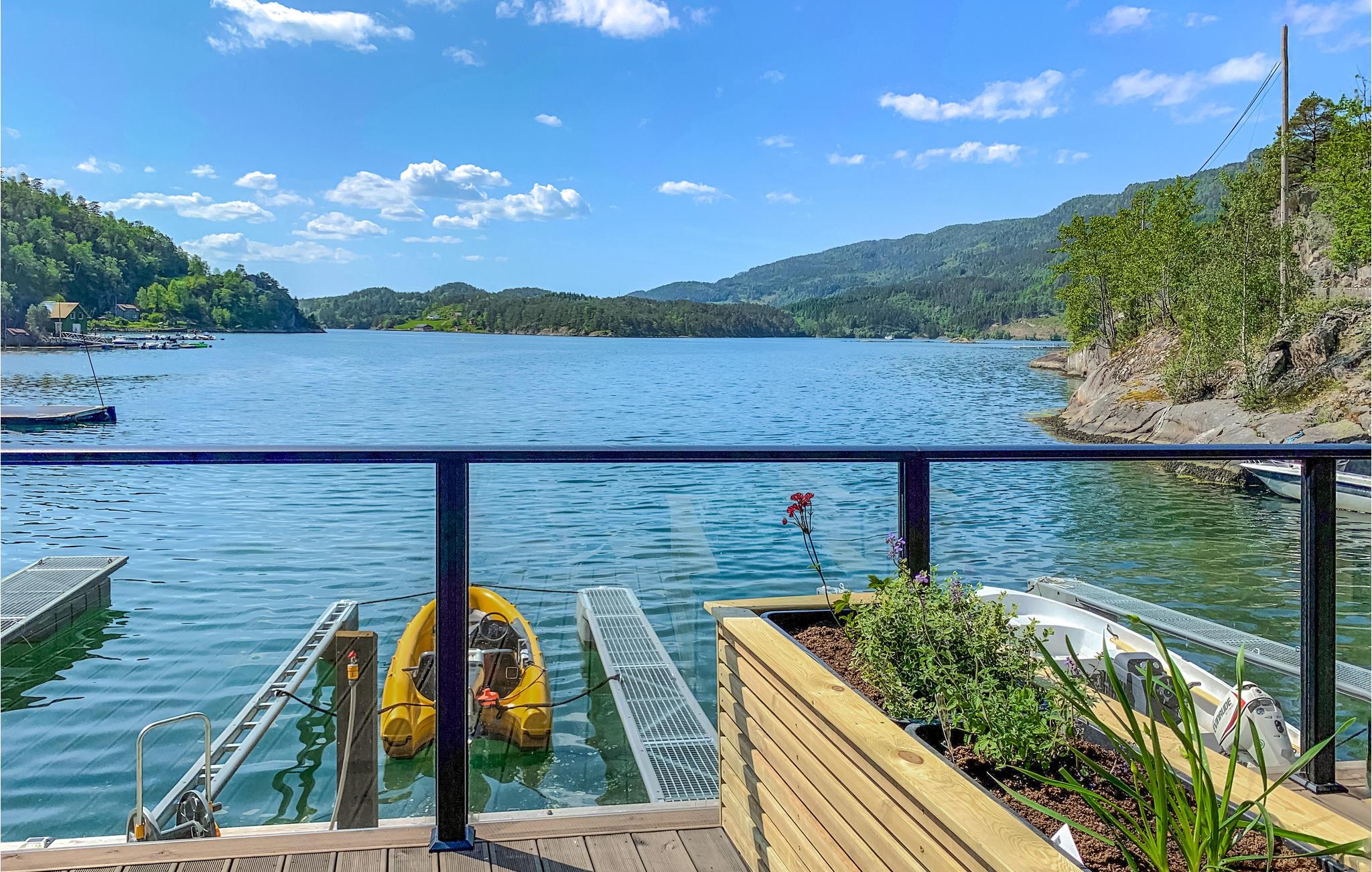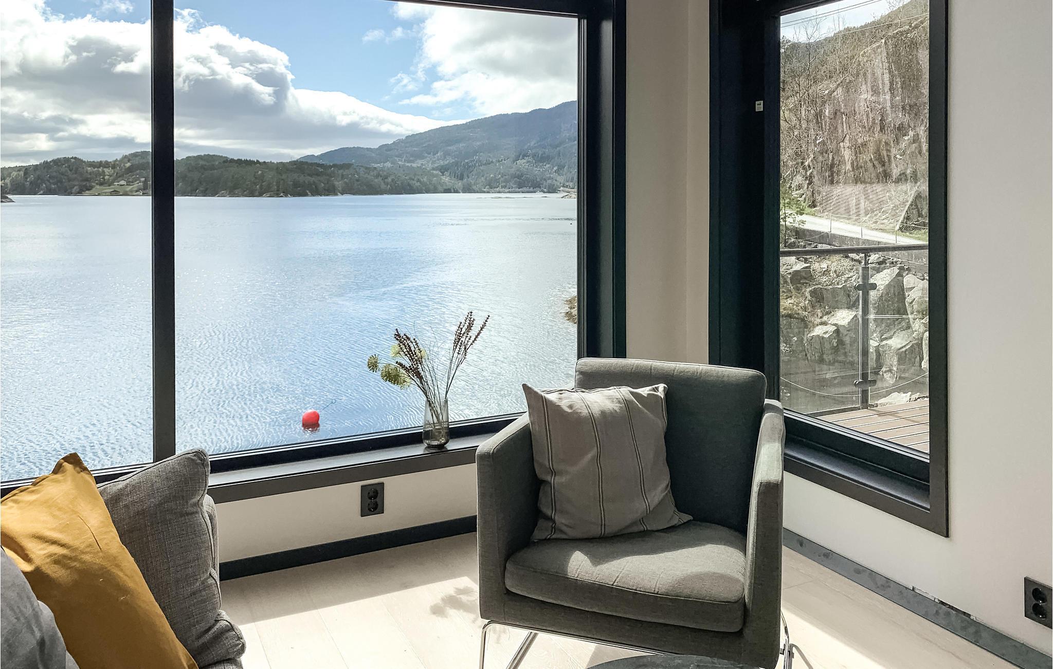 Diese moderne Hütte direkt am Vatlandsvåg heißt Sie herzlich willkommen. Das Ferienhaus ist hell und modern eingerichtet und bietet Ihnen allen Komfort. Unterhalten Sie sich am Esstisch im Wohnzimmer mit Panoramafenstern oder auf der Terrasse mit Blick auf den Fjord und die verträumte Natur. Gehen Sie aus der Tür und werfen Sie die Angel aus, vielleicht bekommen Sie heute Lachs oder Dorsch zum Abendessen? Trinken Sie abends ein Glas Wein auf der offenen Terrasse und genießen Sie die malerische Umgebung. Nutzen Sie das Kajak, das Ihnen im Haus zur Verfügung steht, paddeln Sie los und genießen Sie eine Kajakfahrt auf dem Fjord. Bootsverleih möglich.