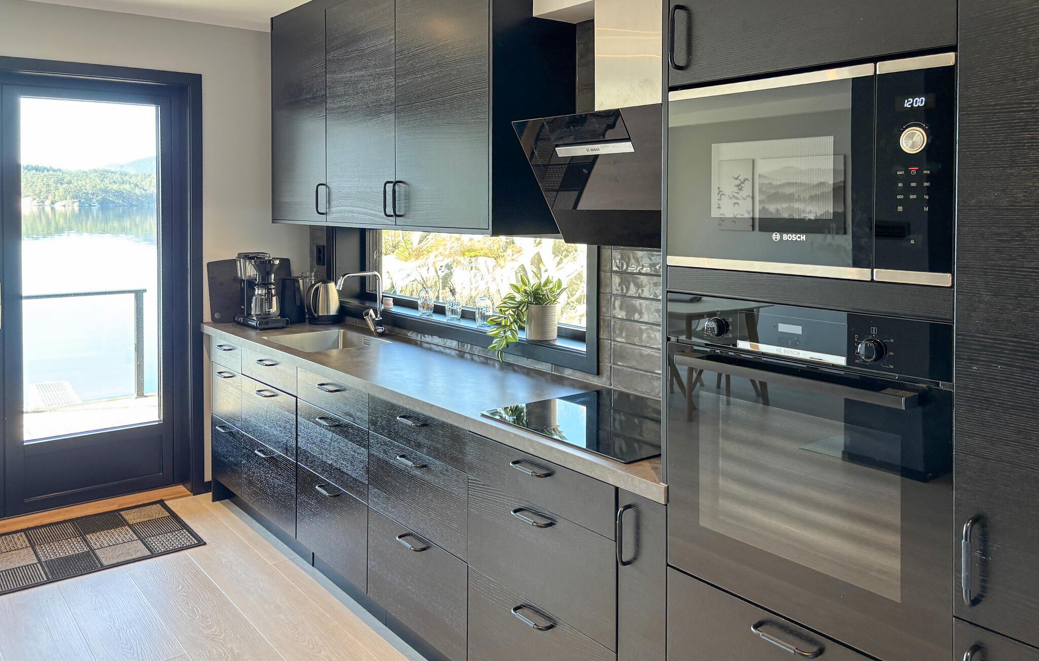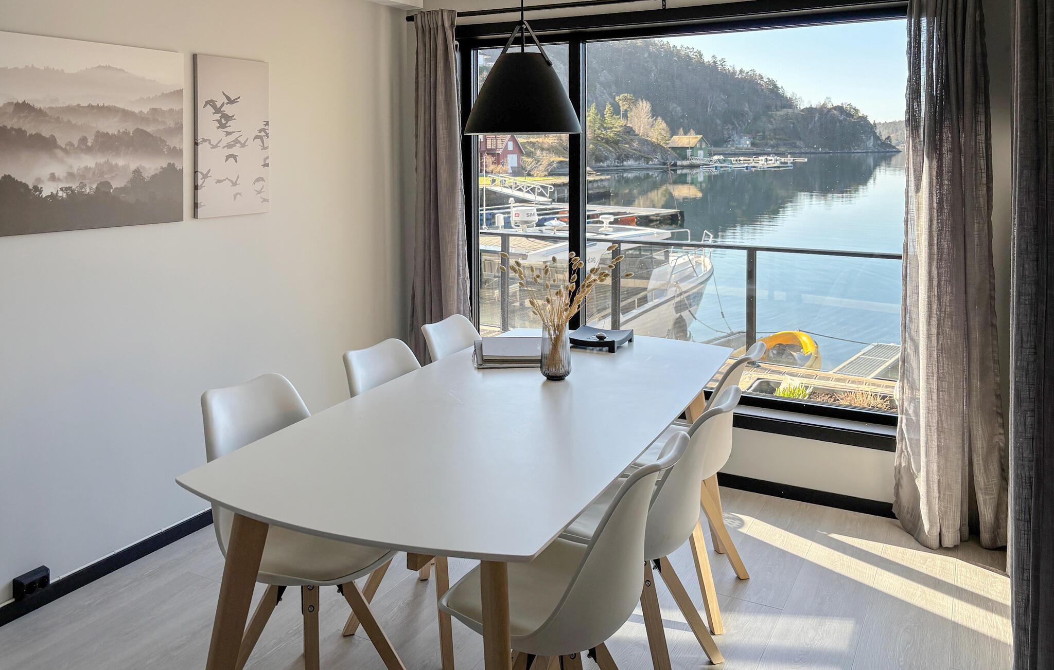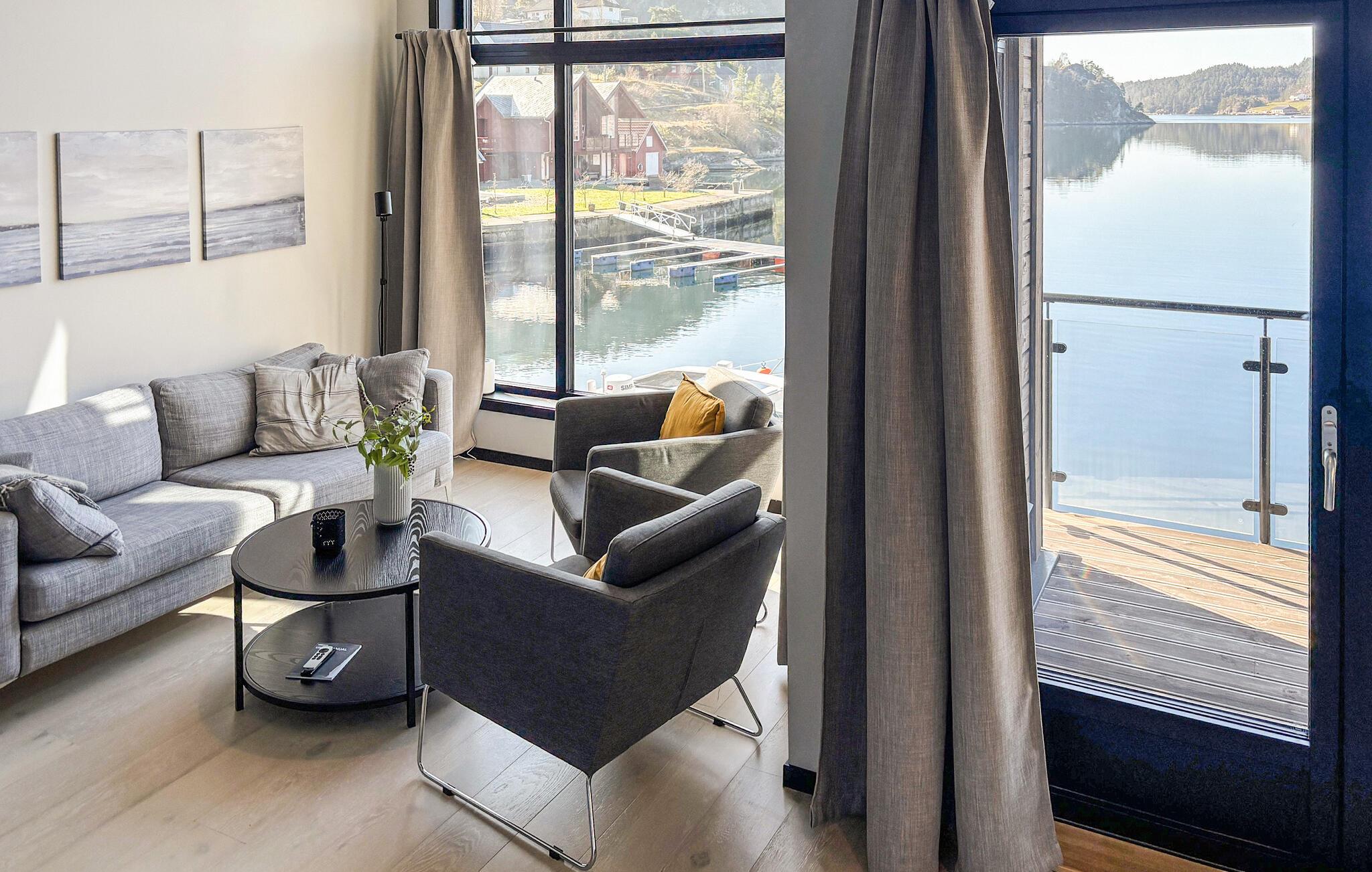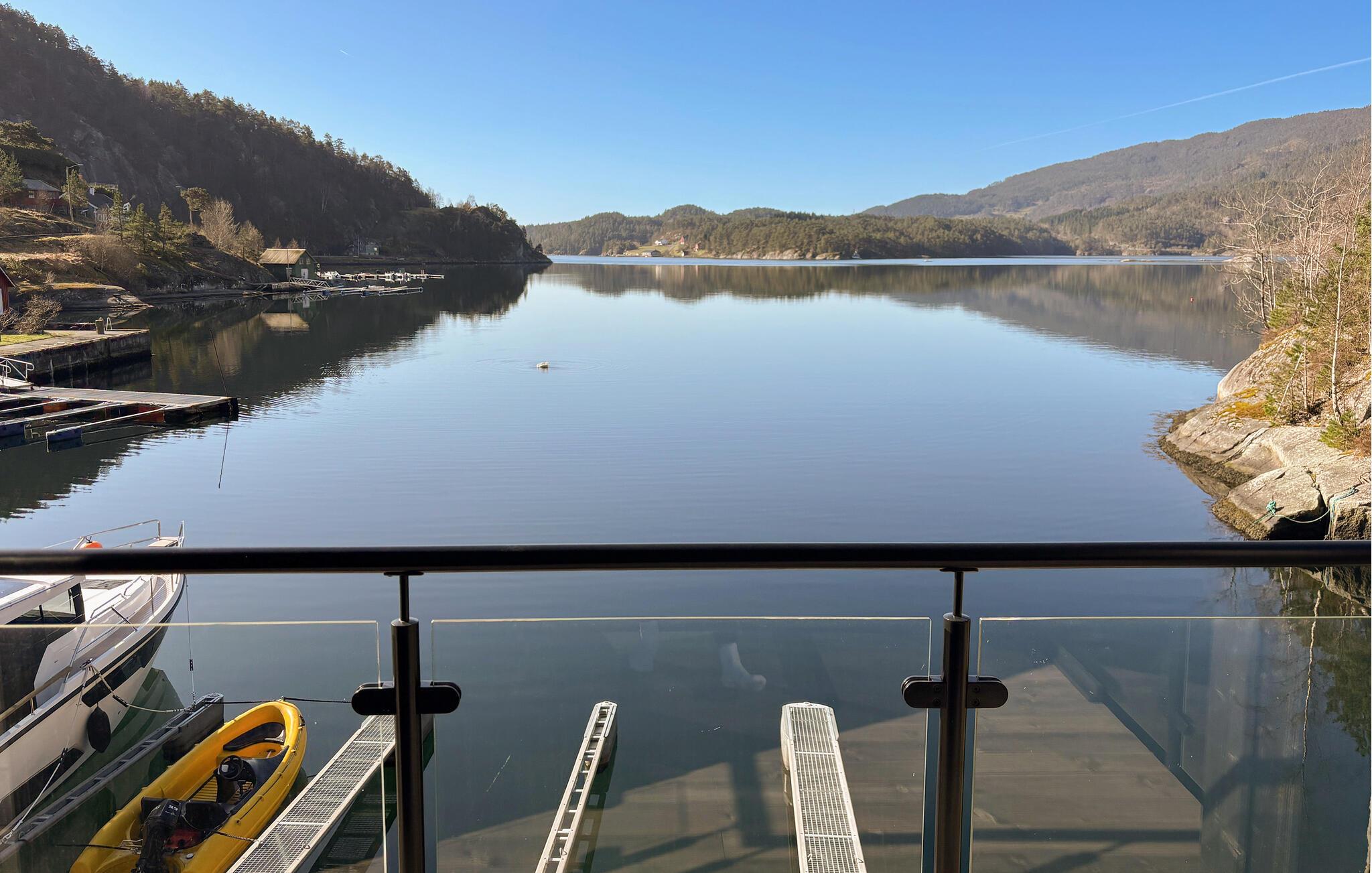 Diese moderne Hütte direkt am Vatlandsvåg heißt Sie herzlich willkommen. Das Ferienhaus ist hell und modern eingerichtet und bietet Ihnen allen Komfort. Unterhalten Sie sich am Esstisch im Wohnzimmer mit Panoramafenstern oder auf der Terrasse mit Blick auf den Fjord und die verträumte Natur. Gehen Sie aus der Tür und werfen Sie die Angel aus, vielleicht bekommen Sie heute Lachs oder Dorsch zum Abendessen? Trinken Sie abends ein Glas Wein auf der offenen Terrasse und genießen Sie die malerische Umgebung. Nutzen Sie das Kajak, das Ihnen im Haus zur Verfügung steht, paddeln Sie los und genießen Sie eine Kajakfahrt auf dem Fjord. Bootsverleih möglich.