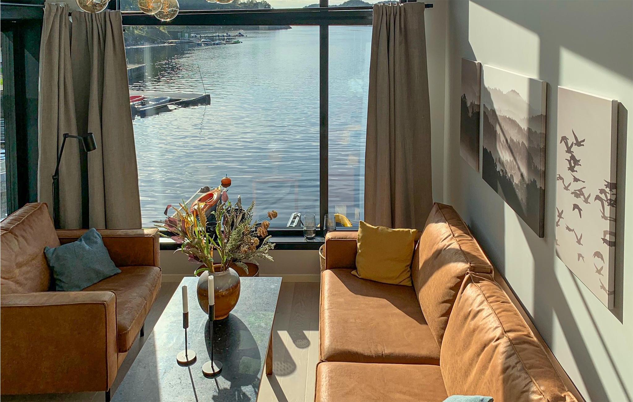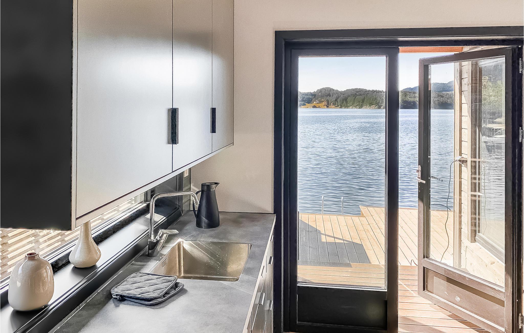 Willkommen in diesem modernen und schönen Ferienhaus, das Ihnen und Ihrer Familie einen fantastischen Urlaub bereiten wird. Sollten Sie mit Ihrer Großfamilie verreisen, können Sie noch weitere Unterkünfte in den Nachbarhäusern dazubuchen. Das gesamte Haus ist im skandinavischen Stil eingerichtet und bietet Ihnen den idealen Rahmen, sich direkt am Wasser zu entspannen und an den Abenden bei einem gemütlichen Kaminfeuer auszuruhen. Treten Sie aus der großen Küche auf die Terrasse, wo Sie in den warmen Monaten Ihre Mahlzeiten genießen können und nach dem Frühstück direkt ins Wasser springen können. Setzen Sie sich anschließend auf das Sonnendeck und lassen das Kajak ins Wasser, das Ihnen am Haus zur Verfügung steht. Paddeln Sie los und genießen Sie eine Kajaktour über den Fjord.