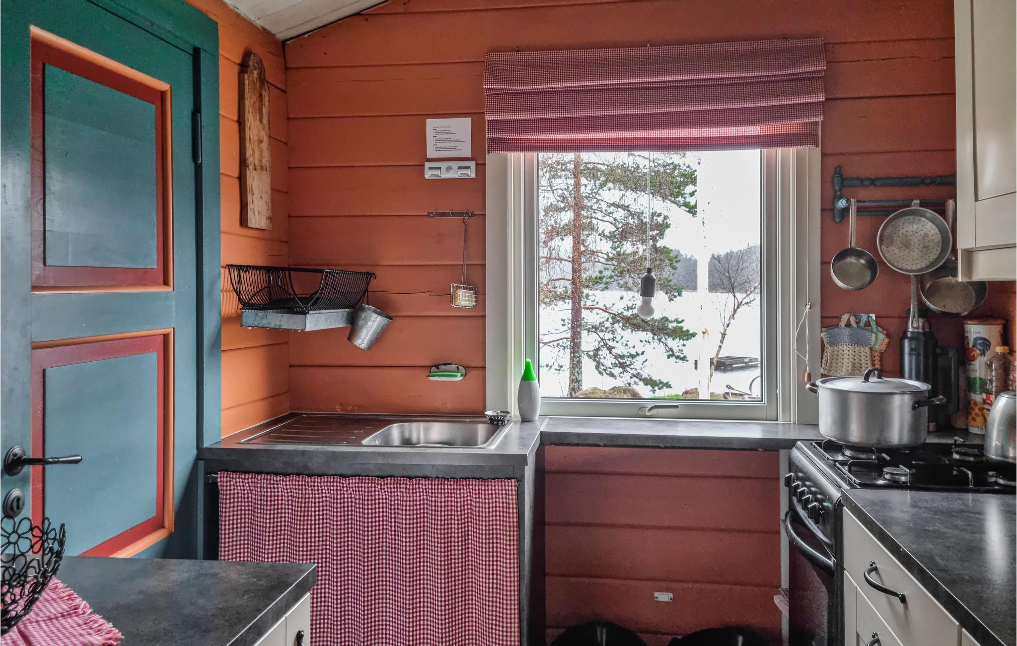 Willkommen in Ihrem Ferienhaus mit traumhafter Lage direkt am See. Hier können Sie die Ruhe genießen und eine erholsame Auszeit inmitten der Natur verbringen. Ohne Strom und fließendes Wasser bietet dieses Haus ein authentisches Erlebnis abseits des Trubels. Machen Sie es sich im gemütlichen Wohnbereich bequem. Die rustikalen Holzwände verleihen dem Raum eine warme Atmosphäre, während der Kaminofen für wohlige Wärme sorgt. Nutzen Sie die einfache Kücheneinrichtung und bereiten Sie Ihre Mahlzeiten in entspannter Umgebung zu.