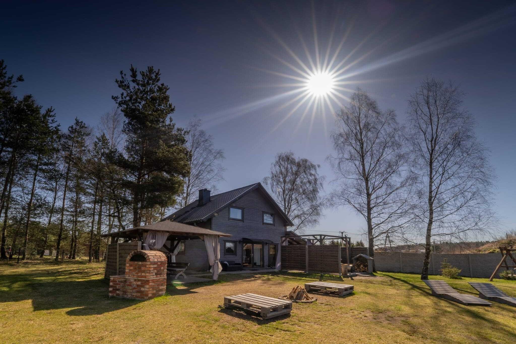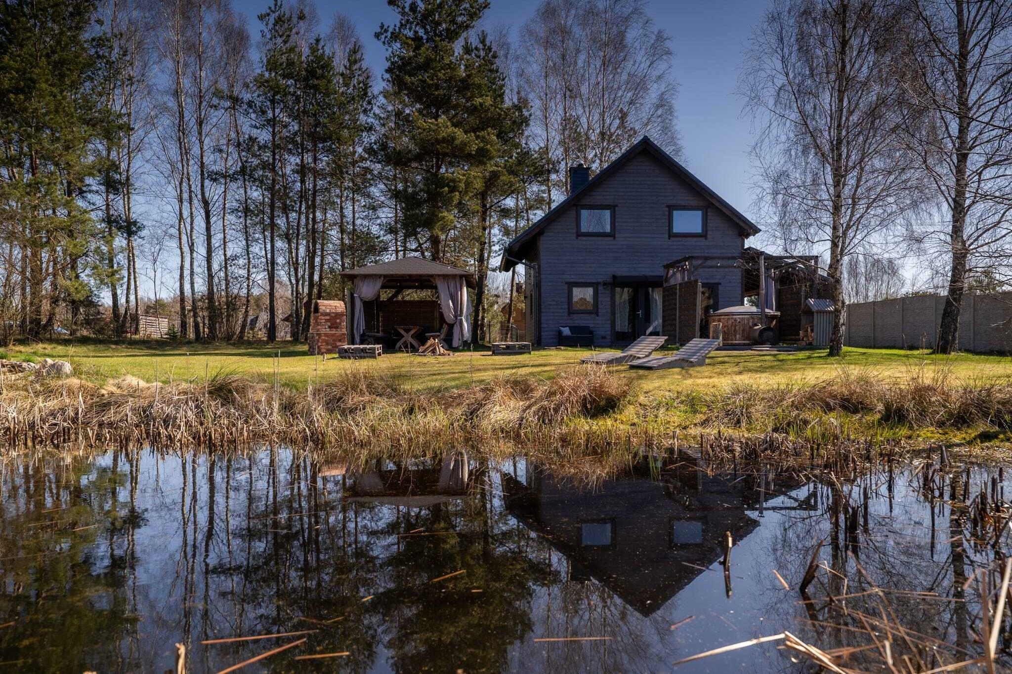 Ein idealer Ort zum Entspannen fernab von Hektik und Trubel, inmitten der Natur, an einem privaten Teich. Hier wird der Morgenkaffee im Sonnenaufgang zu einem ganz besonderen Genuss. Ein großes, komfortables, zweistöckiges Ferienhaus auf einem privaten, umzäunten Grundstück (zur exklusiven Nutzung durch Gäste) mit kostenfreiem Wellnessbereich: Sauna, Whirlpool mit Jacuzzi, Kühlbecken und Salzgrotte. Im Erdgeschoss befinden sich ein geräumiges Wohnzimmer (TV, großer Tisch, Kamin, Doppelschlafsofa), eine voll ausgestattete Küche und ein Badezimmer mit Dusche. Im Obergeschoss befinden sich vier separate Schlafzimmer. Das Ferienhaus verfügt über eine Sauna, eine entspannende Salzgrotte sowie ein angrenzendes Kühlbecken und einen Whirlpool. Beheizt wird das Haus durch einen Kamin (Holz im Preis inbegriffen). WLAN ist verfügbar. Eine überdachte Terrasse mit Gartenmöbeln lädt zum Verweilen ein. Auf dem privaten Grundstück befinden sich außerdem ein Gartenpavillon, ein Grill und eine Feuerstelle. Sichere Parkplätze stehen zur Verfügung. Auf dem angrenzenden Grundstück haben Gäste dreier benachbarter Ferienhäuser Zugang zu einem Kinderspielplatz, einem Volleyballfeld, einer Tischtennisplatte, Nordic-Walking-Stöcken, einem Fußballtor und einem Outdoor-Fitnessbereich. Mehrere Go-Karts stehen den Gästen kostenlos zur Verfügung. Im Preis inbegriffen sind: Bettwäsche, Handtücher, Bademäntel, Sauna, Whirlpool mit Jacuzzi, Salzgrotte, Wasser, Brennholz, Endreinigung, Internet, Parkplatz und Angeln in einem privaten Teich. Das Ferienhaus liegt im Herzen der Kaschubei, umgeben von dichten Wäldern, malerischen Wiesen und zahlreichen Seen mit kristallklarem Wasser. Der nächste Badesee ist der Skrzynki Duze (3,6 km vom Haus entfernt). Dort befindet sich auch eine Tauchschule. Im Nachbarort Lipusz (1,5 km entfernt) gibt es ein größeres Geschäft, Restaurants und einen Kajakverleih (für Kajaktouren auf der Wda).