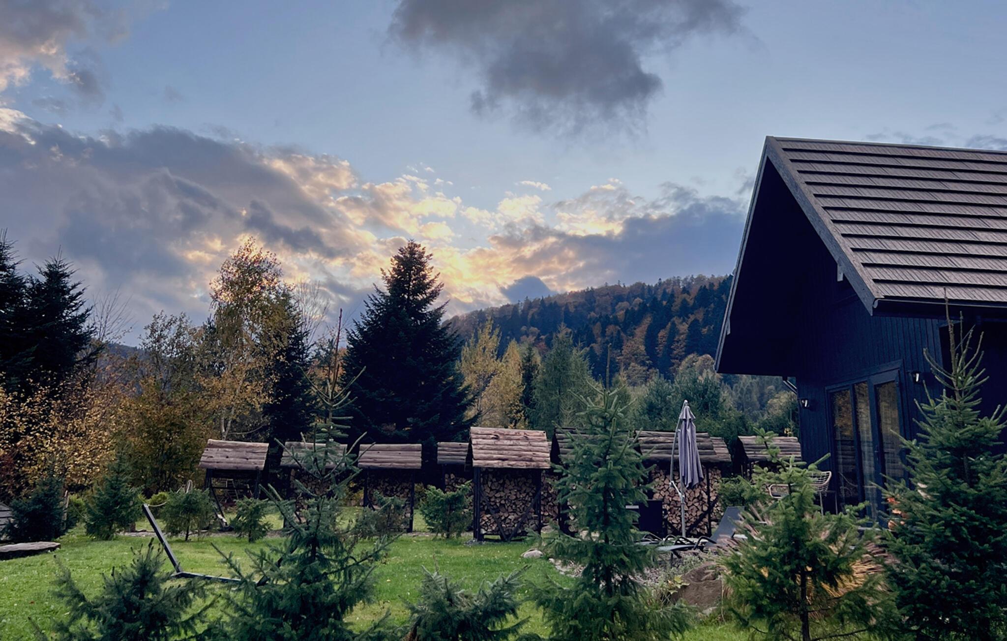 Verbringen Sie erholsame Tage in diesem stilvollen Holzhaus mit Infrarotsauna und weitem Bergblick.