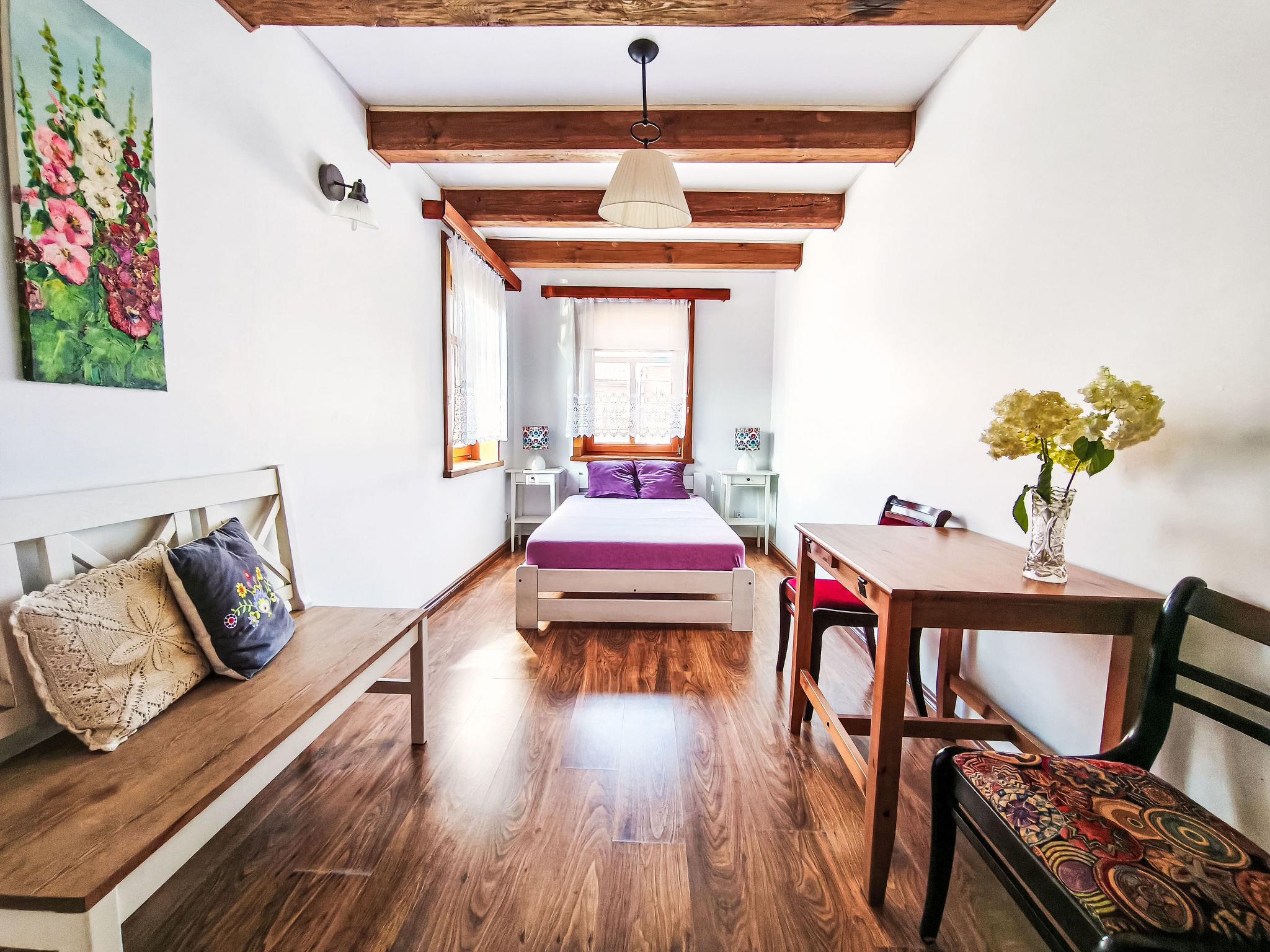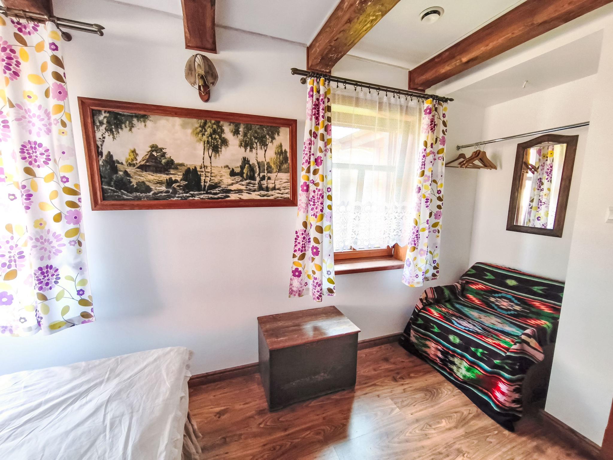 Regionale Hängematte. HINWEIS: Haus PL1723.300.1 kann als Ganzes oder als einzelne Wohnungen gemietet werden: Julia (PL1723.300.2) und Kalina (PL1723.300.3). An jeder Eingangstür befindet sich ein Schlüsselschließfach (Selbst-Check-in ist möglich, bitte kontaktieren Sie vor Ihrer Ankunft die für die Schlüssel verantwortliche Person). Das Haus wurde komplett renoviert. Ein sehr guter Ausgangspunkt, um die Gegend zu Fuß oder mit dem Fahrrad zu erkunden. Einfamilienhaus "U Prababci Olgi", Baujahr 1914, renoviert im Jahre 2012. Ruhige, erhöhte Lage, exzellente Lage: Absolut zentral und dennoch ruhig, an einer Strasse, im Grünen. Zur Mitbenutzung: Grundstück 1'400 m2, grosser Garten 200 m2 Blumen, Wiese 800 m2. Terrasse (10 m2), Gartenmöbel, Grill, Parkplatz beim Haus auf dem Grundstück. Einkaufsgeschäft, Lebensmittelgeschäft 500 m, Supermarkt 2 km, Restaurant 500 m, Bushaltestelle 1 km. Reitstall, Wanderwege ab Haus, Radweg 500 m, Kinderspielplatz 1.5 km. Bitte beachten: geeignet für Familien. Der Besitzer akzeptiert keine Jugendgruppen.