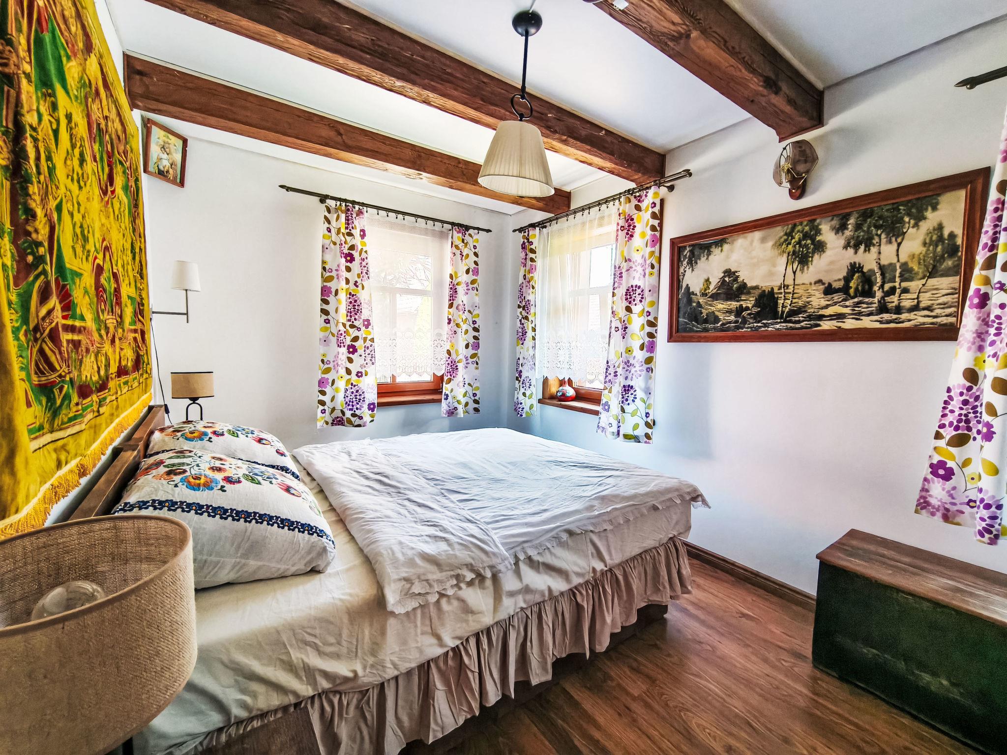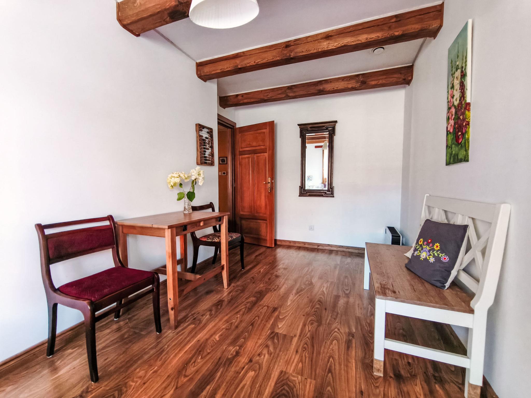 "Kalina", 2-Zimmer-Wohnung. Komfortabel und rustikal eingerichtet: 1 Zimmer 14 m2 mit 1 Doppelbett (160 cm, Länge 200 cm), TV. 1 Zimmer 12 m2 mit 1 Diwanbett (80 cm, Länge 200 cm), 1 Doppelbett (140 cm, Länge 200 cm). Kochnische (1 Induktionskochplatten, Mikrowelle). Dusche/WC. Maximal 1 Haustier/Hund erlaubt. Keine interne Verbindung zwischen den separaten Wohneinheiten. Die Wohnungen PL1723.300.2 und PL1723.300.3 befinden sich auf demselben Grundstück (sie können als Ganzes gemietet werden: Haus PL1723.300.2).