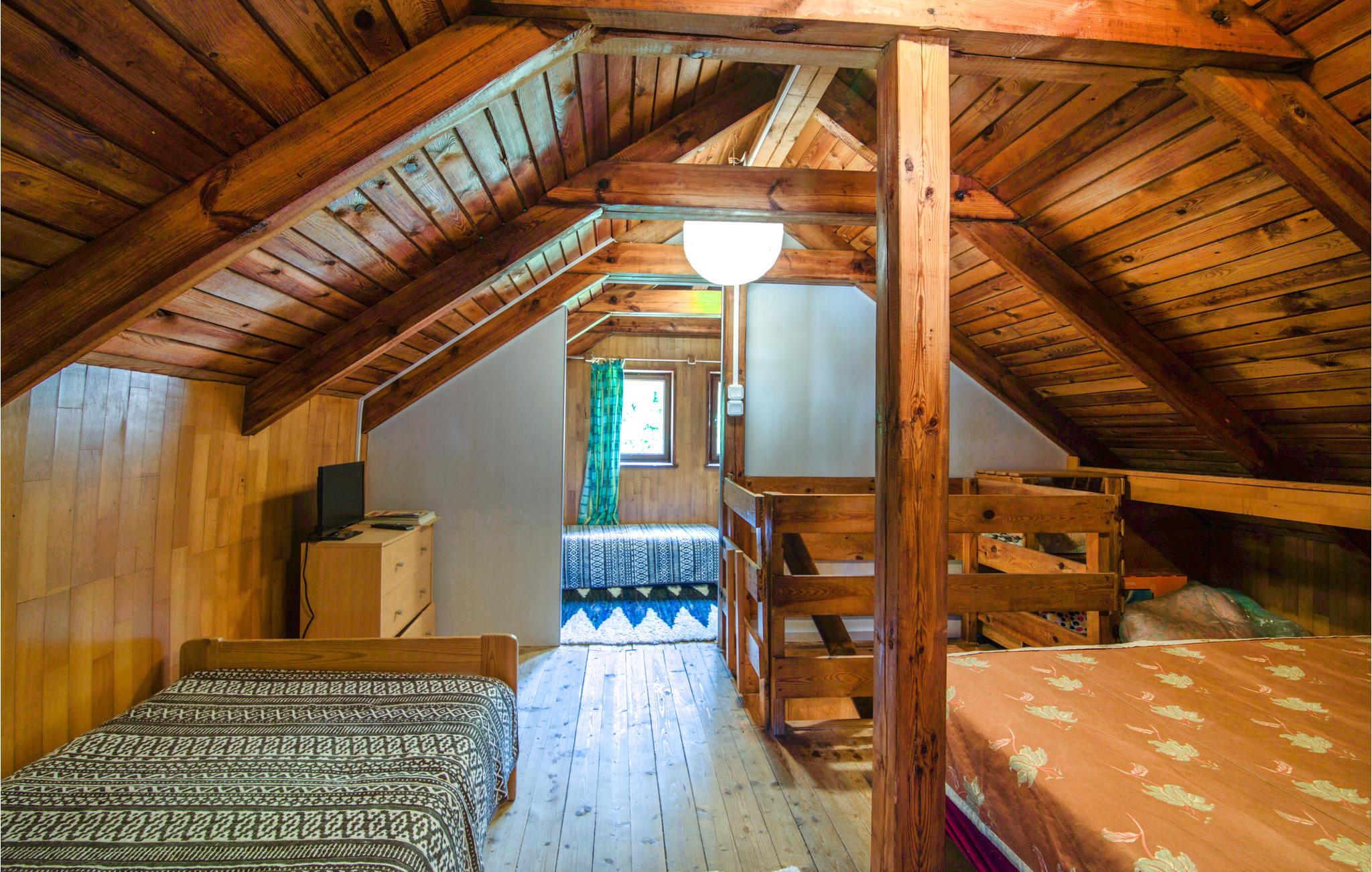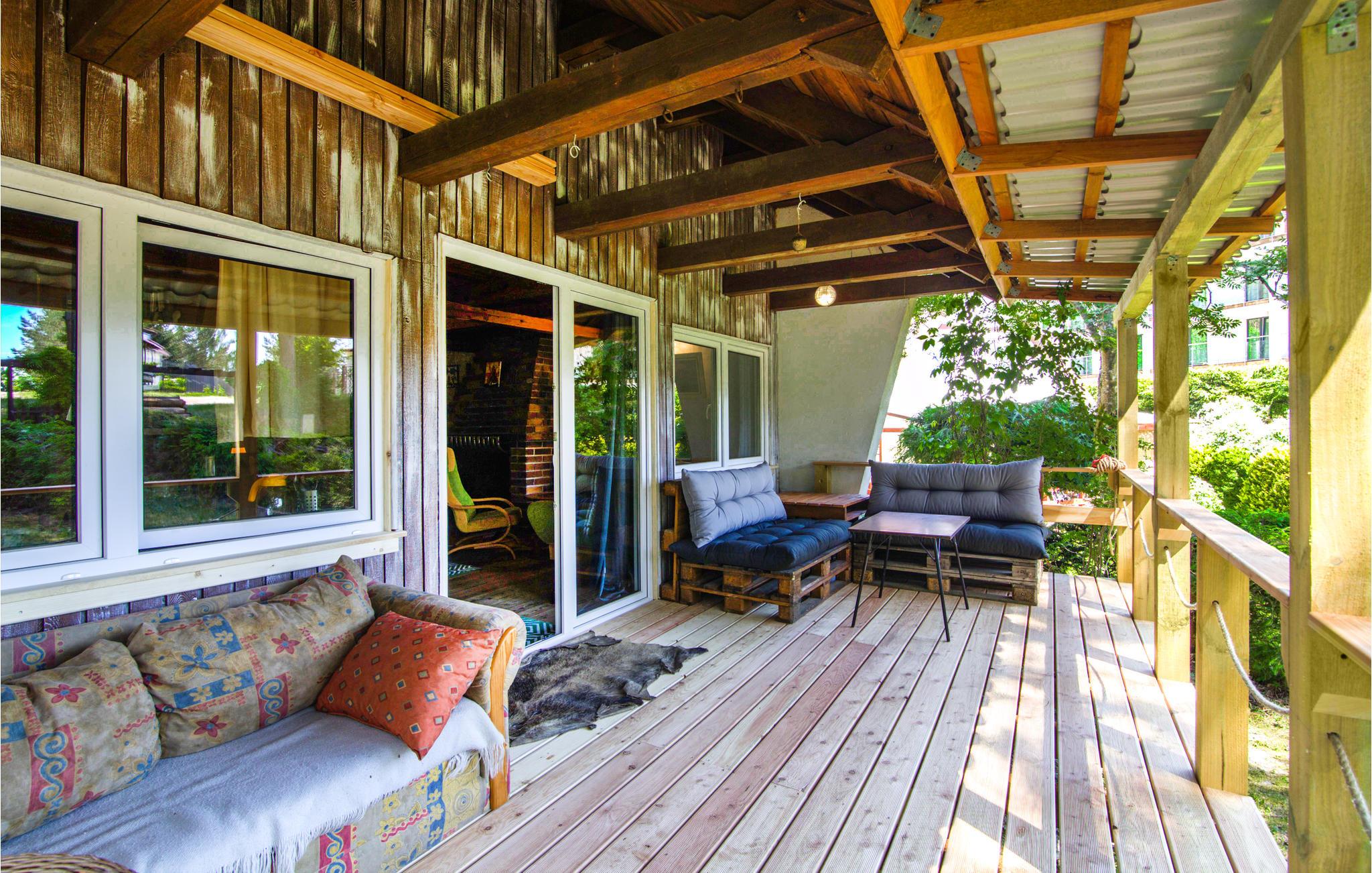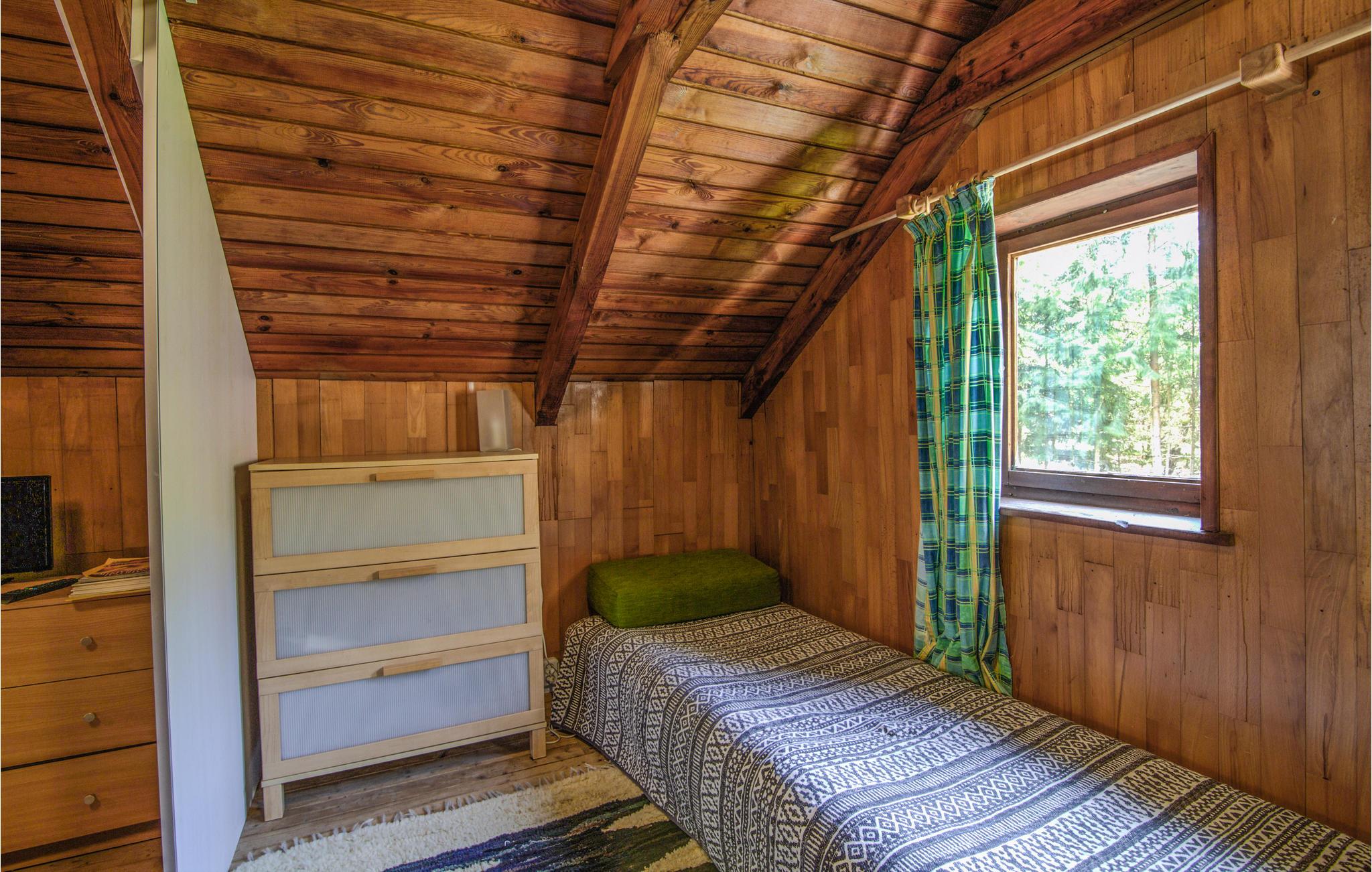 Suchen Sie nach einer guten Base für schöne Ferientage in einem seereichen Gebiet? Ja, dann ist dieses Haus die perfekte Wahl! Die Unterkunft liegt nur ein paar hundert Meter vom See entfernt und hier können sich alle wohlfühlen. Durch seinen urspünglichen Charakter erschafft das Holz im Inneren der Unterkunft sowie auch der Kamin eine angenehm warme Atmosphäre. Kochen Sie zusammen in der Küche und genießen Sie leckeres Essen und den Sonnenuntergang bei einem Gläschen Wein auf der überdachten Terrasse.