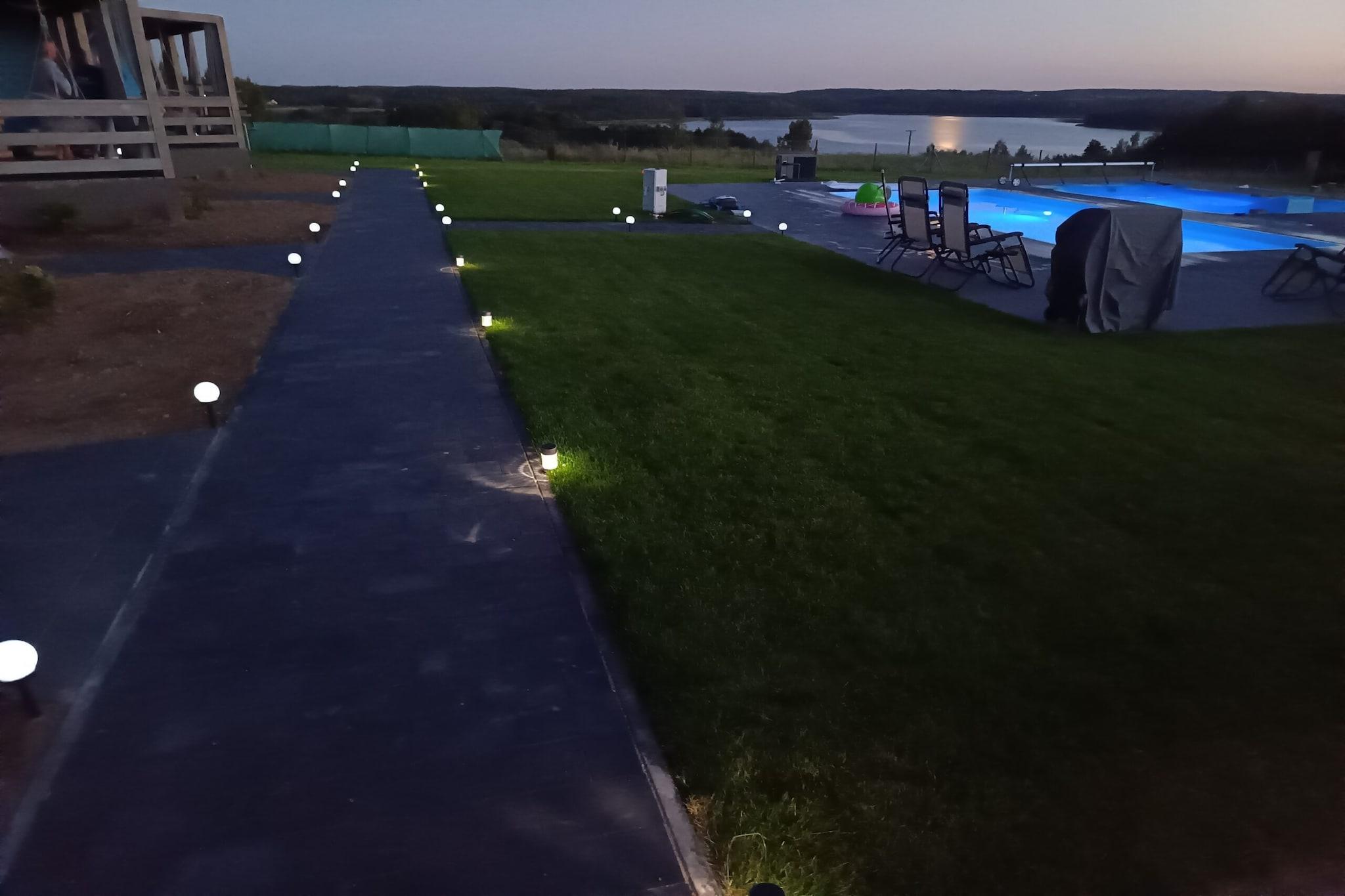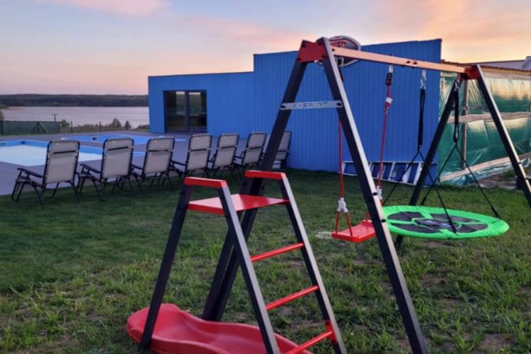 Ein einzigartiges, idyllisches Resort, das Komfort und Entspannung inmitten der Natur vereint. Gäste haben Zugang zu einem Swimmingpool und einem kostenfreien Wellnessbereich (Whirlpool, Saunen). Die geräumigen Ferienhäuser aus Holz verfügen über zwei Schlafzimmer im Erdgeschoss und ein drittes Schlafzimmer im Zwischengeschoss. Im Erdgeschoss befinden sich außerdem ein Wohnzimmer (TV, Esstisch, Doppelschlafsofa), eine voll ausgestattete Küche und ein Badezimmer mit Dusche (und Waschmaschine). Eine große, überdachte Terrasse mit Seeblick, ausgestattet mit einem gemütlichen Tisch und zwei Schaukeln, lädt zum morgendlichen Kaffee oder einem abendlichen Grillabend ein. Die Ferienhäuser sind mit Klimaanlage (Heiz- und Kühlfunktion) und Fußbodenheizung in den Badezimmern ausgestattet. WLAN ist verfügbar. Das Resort bietet zudem zwei beheizte Sommerpools (ein größeres Becken und ein Kinderbecken; geöffnet vom 1. Mai bis 30. September). Im kostenfreien Wellnessbereich können Entspannungssuchende einen Whirlpool für 6 Personen und zwei Saunen (finnische Sauna und Infrarotsauna) nutzen. In der Nähe befindet sich ein Spielzimmer mit Tischfußball, Billard und Darts. Außerdem gibt es einen Fitnessraum. Fahrräder und ein Stand-Up-Paddleboard stehen kostenlos zur Verfügung. Für Kinder gibt es einen Spielplatz. Sichere Parkplätze sind ebenfalls vorhanden. Im Preis inbegriffen sind: Bettwäsche, Handtücher, Strom, Wasser, Klimaanlage, Heizung, Schwimmbad (1. Mai – 30. September), Saunen, Whirlpool, Fahrräder, Endreinigung, Internet, Parkplatz und Kurtaxe. Ein Kinderbett und ein Hochstuhl sind auf Anfrage erhältlich. Der nächste Strand mit Seebrücke ist ca. 1 km vom Resort entfernt. Ein größerer, besser ausgestatteter Strand befindet sich am Brzuskie-See (ca. 5 km entfernt). Die Umgebung eignet sich ideal für ausgedehnte Spaziergänge und attraktive Radtouren.