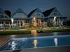 Ein einzigartiges, idyllisches Resort, das Komfort und Entspannung inmitten der Natur vereint. Gäste haben Zugang zu einem Swimmingpool und einem kostenfreien Wellnessbereich (Whirlpool, Saunen). Die geräumigen Ferienhäuser aus Holz verfügen über zwei Schlafzimmer im Erdgeschoss und ein drittes Schlafzimmer im Zwischengeschoss. Im Erdgeschoss befinden sich außerdem ein Wohnzimmer (TV, Esstisch, Doppelschlafsofa), eine voll ausgestattete Küche und ein Badezimmer mit Dusche (und Waschmaschine). Eine große, überdachte Terrasse mit Seeblick, ausgestattet mit einem gemütlichen Tisch und zwei Schaukeln, lädt zum morgendlichen Kaffee oder einem abendlichen Grillabend ein. Die Ferienhäuser sind mit Klimaanlage (Heiz- und Kühlfunktion) und Fußbodenheizung in den Badezimmern ausgestattet. WLAN ist verfügbar. Das Resort bietet zudem zwei beheizte Sommerpools (ein größeres Becken und ein Kinderbecken; geöffnet vom 1. Mai bis 30. September). Im kostenfreien Wellnessbereich können Entspannungssuchende einen Whirlpool für 6 Personen und zwei Saunen (finnische Sauna und Infrarotsauna) nutzen. In der Nähe befindet sich ein Spielzimmer mit Tischfußball, Billard und Darts. Außerdem gibt es einen Fitnessraum. Fahrräder und ein Stand-Up-Paddleboard stehen kostenlos zur Verfügung. Für Kinder gibt es einen Spielplatz. Sichere Parkplätze sind ebenfalls vorhanden. Im Preis inbegriffen sind: Bettwäsche, Handtücher, Strom, Wasser, Klimaanlage, Heizung, Schwimmbad (1. Mai – 30. September), Saunen, Whirlpool, Fahrräder, Endreinigung, Internet, Parkplatz und Kurtaxe. Ein Kinderbett und ein Hochstuhl sind auf Anfrage erhältlich. Der nächste Strand mit Seebrücke ist ca. 1 km vom Resort entfernt. Ein größerer, besser ausgestatteter Strand befindet sich am Brzuskie-See (ca. 5 km entfernt). Die Umgebung eignet sich ideal für ausgedehnte Spaziergänge und attraktive Radtouren.