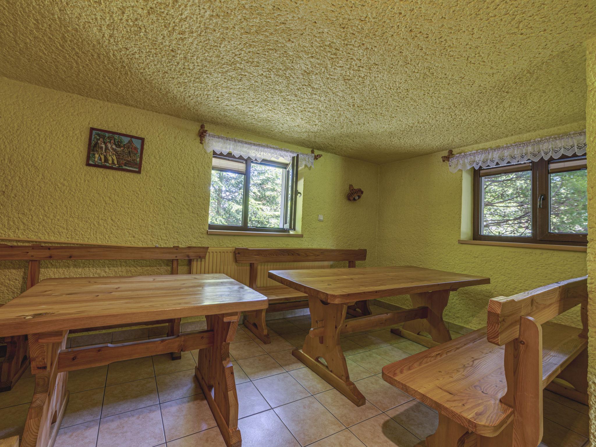 Chalet "Super Hacjenda". 4 Wohnungen im Ferienhaus. Ruhige, sonnige Lage, 100 m vom Waldrand, 500 m vom Skigebiet, 200 m vom Fluss, im Grünen. Zur Mitbenutzung: Grundstück 5'000 m2 (eingezäunt), Rasen, Obstgarten, Aufstellpool (5 m Durchmesser, 125 cm tief, saisonale Verfügbarkeit: 01.Jun. - 31.Aug.). Gartenmöbel, Grill, Feuerstelle (Schaukel, Sandkasten). Zufahrt bis zum Haus. Parkplatz beim Haus auf dem Grundstück. Einkaufsgeschäft, Lebensmittelgeschäft, Restaurant 200 m, Bushaltestelle 200 m, Hallenbad 3 km, Thermalbad "Bialka Tatrz./Bukowina Tatrz." 5 km. Tennis 200 m, Reitstall 2 km, Skilift 500 m. Bitte beachten: geeignet für Familien. Der Besitzer wohnt auf dem gleichen Grundstück. 40 Skilifte in einer Distanz von 10 km. Es besteht die Möglichkeit, Schlittenfahrten, Pferdekutsche in die Slovakai und zur Almhütte oder Wanderungen zur Almhütte zu organisieren (alles extra vor Ort zu bezahlen). Verleih der Motorschlitten (extra bezahlt). Fitness und Trampoline im Sommer auf dem Grundstück (gratis).
