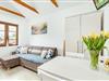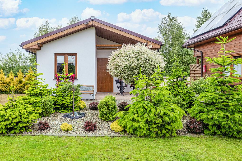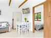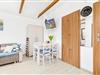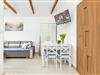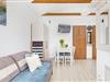 PL 56.5 Ferienhaus 2-4 Pers.: Schön eingerichtetes 2-Zimmerhaus mit 22 qm Wohnfläche. Parterre: Heller Wohn-/Essraum mit Holzbalkendecke, Couch (Klappcouch 2 Pers.), Flachbild SMART-TV, Esstisch, kleiner Küchenzeile (2 E-Platten Induktion, Mikrowelle). Doppelzimmer. Bad: Du, Wb, WC. Überdachter Terrasse mit Sitzmöbeln, schönem Ausblick auf den davorliegenden Garten.