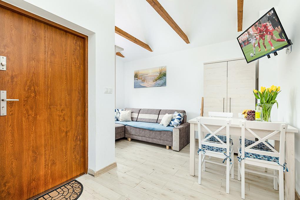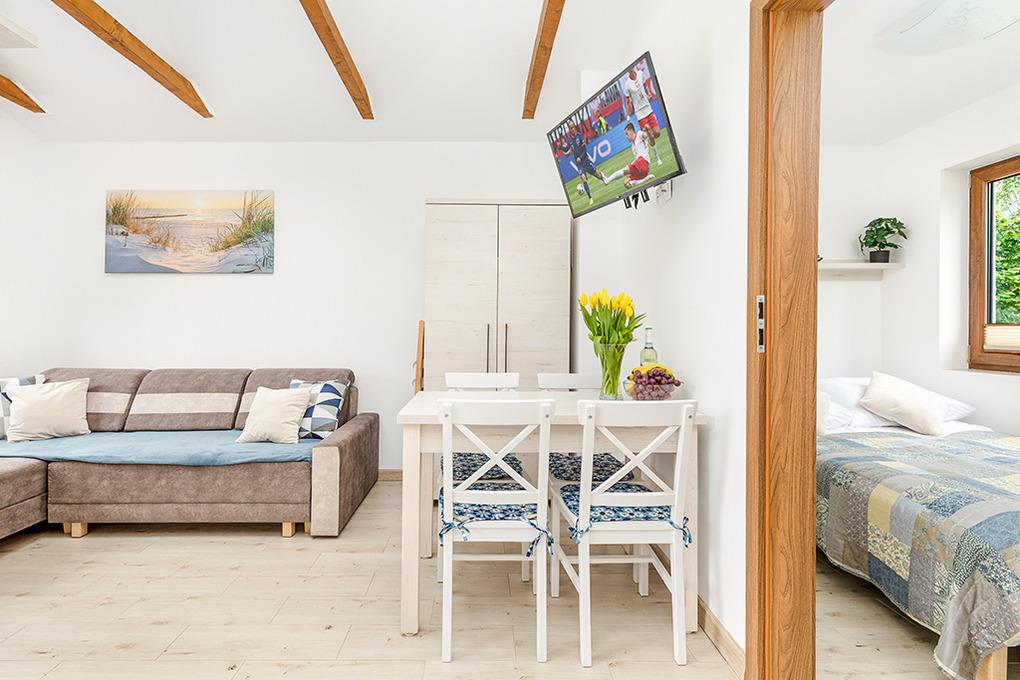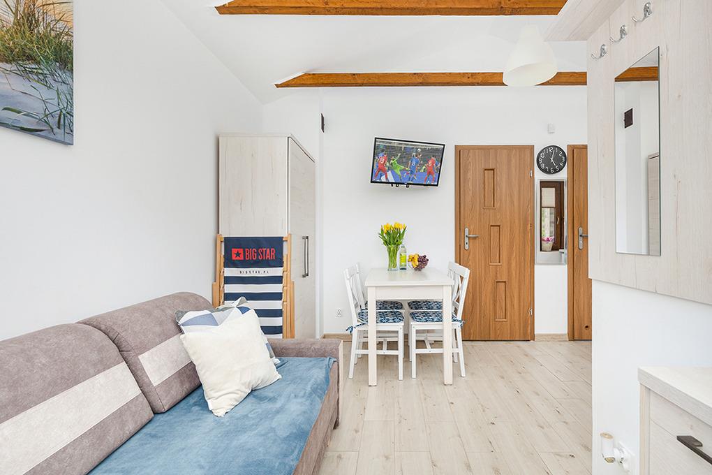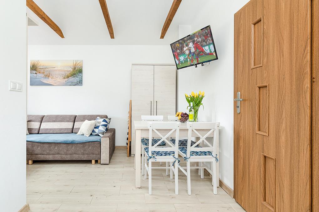 Nebenkosten: Strom nach Verbrauch (1,20 Zl./kWh) nur im Zeitraum 18.1.-30.5. + 31.8.-23.1. E-Heizung inklusive (Bestellung). Kurtaxe. Bettwäsche vorhanden. Handtücher mitzubringen. Zusätzliche Leistungen: Kostenloser Internetzugang über W-Lan. 1 Pkw-Stellplatz im Preis inklusive. Fahrrad im Preis inklusive (nach Verfügbarkeit, Bestellung). Kaution 100 €. Kinder Babybett/Hochstuhl nur innerhalb der maximalen Personenzahl, jeweils ohne Berechnung (Bestellung). Haustier 15 Zl./Tag, max. 2 Hunde (Anmeldung) (Nur Haustiere bis 30cm Schulterhöhe). Die Nebenkosten sind vor Ort beim Vermieter zu zahlen.