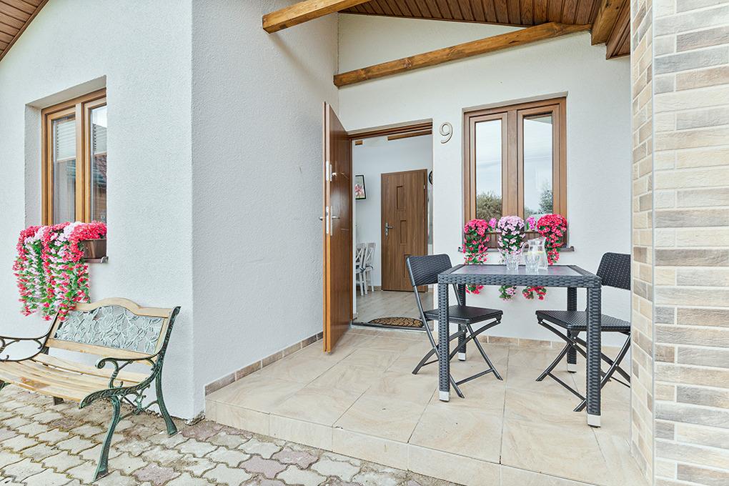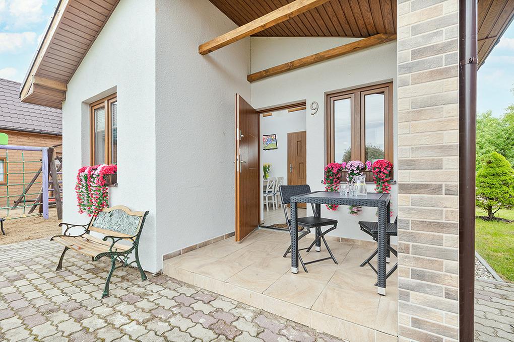 Ort: Chlopy. 5,5 km westlich vom Ostseebad Mielno und 2 km östlich von Sarbinowo ist Chlopy ein aufstrebendes und interessantes Fischerdorf mit zunehmender touristischer Infrastruktur. Ruhige Lage in einer Seitenstraße 850 m vom Ostseestrand entfernt. Einkaufmöglichkeiten 700 m (Mai-Sept). Supermarkt 1,5 km. Ortsmitte mit Strandpromenade, Cafés 800 m. Restaurants 700 m. Seebrücke, Fischkutter und Räucherei 900 m. Museum "Skarbnica" mit Ausstellung von historischem Angelboot und Gegenständen des historischen Alltages der Dorfbewohner und Fischer aus dem 18. und 19. Jahrhundert 650 m. Mielno mit lebhafter Strandpromenade, Segelhafen und Bootsverleih am Jamno See 5,5 km. Öffentliches Hotelhallenbad mit Wellnessbereich, Sauna, Solebecken, Innen- und Außenwhirlpool 6,4 km. Köslin mit Einkauszentren und Aqua Park 17 km. Freizeitpark Pomerania Fun Park 31 km.