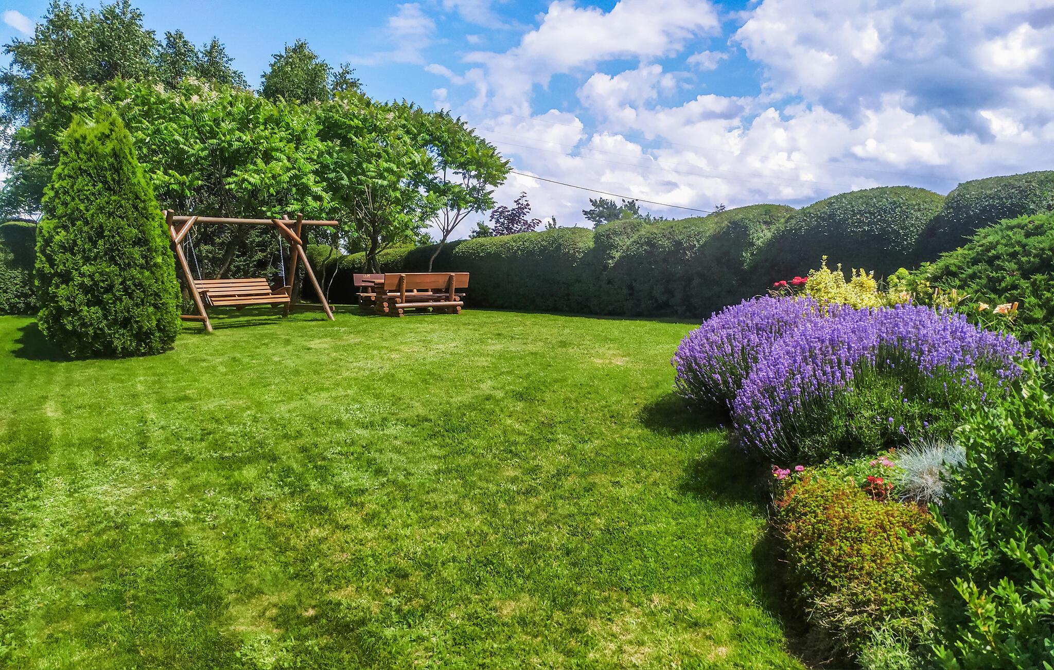 Das große, grüne Grundstück ist ideal für erholsame Stunden im Freien. Frühstücken Sie im Sonnenschein oder im Schatten der Bäume, suchen Sie sich ein ruhiges Plätzchen zum Lesen oder spielen Sie eine Runde Volleyball. Abends können Sie gemütlich an der Feuerstelle sitzen, während die Sterne langsam beginnen zu blinken.