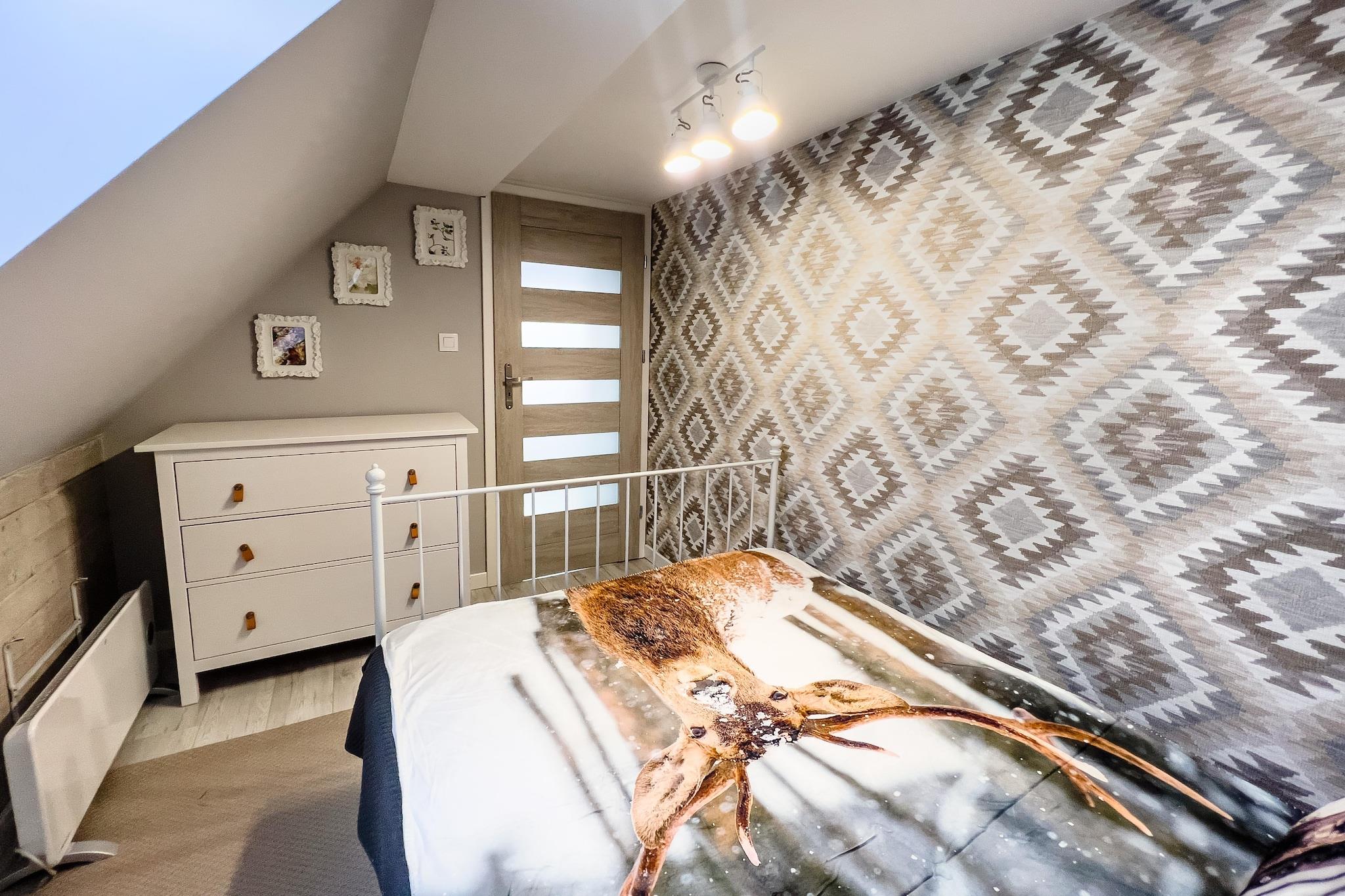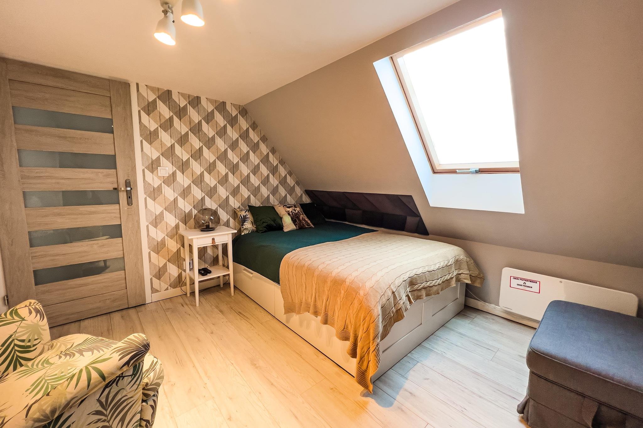 Ein komfortables Ferienhaus mit hervorragender Freizeitausstattung (Sauna, Sommerpool) in traumhafter Lage – einem kleinen Badeort direkt am Meer, nur 300 Meter vom Haus entfernt. Dieses geräumige, zweistöckige Ferienhaus erwartet Sie auf einem privaten, umzäunten Grundstück. Im Erdgeschoss befinden sich ein Wohnzimmer (mit TV und Doppelschlafsofa), ein Esszimmer mit Kamin, eine gut ausgestattete Küche (mit Backofen, Geschirrspüler, Kaffeemaschine und Waschmaschine), ein Schlafzimmer mit Doppelbett und ein Badezimmer mit Dusche. Im Obergeschoss befinden sich drei weitere separate Schlafzimmer. Das Haus verfügt über eine überdachte Terrasse mit Gartenmöbeln, Sonnenliegen und Grillmöglichkeit. Elektrische Heizung und ein Kamin sind vorhanden (Holz ist im Preis inbegriffen). WLAN steht Ihnen zur Verfügung. Auf dem gepflegten Grundstück (zur exklusiven Nutzung durch die Gäste) befinden sich ein Sommerpool (geöffnet vom 1. Mai bis 15. September), eine Sauna und ein sicherer Parkplatz. Im Preis inbegriffen: Bettwäsche, Handtücher, Strom, Wasser, Heizung, Brennholz, Sauna, Sommerpool (1. Mai – 15. September), Internet, Parkplatz und Endreinigung. Kinderbett und Hochstuhl sind auf Anfrage erhältlich. Die unmittelbare Umgebung bietet ungestörte Erholung inmitten der Natur. Es lohnt sich, den nahegelegenen See mit dem Fahrrad (oder zu Fuß) zu erkunden und die charmanten Sandstrände zu besuchen. Der See ist sehr sauber und lädt zum Schwimmen und Angeln (Hecht, Aal, Schleie) ein. Sie können auch den größeren Zarnowieckie-See besuchen, wo Sie Wassersportausrüstung mieten können. Der Strand am Meer ist 12 km entfernt. Hier ist pure Entspannung garantiert, denn selbst in der Hochsaison ist es nicht überlaufen. Die Aussicht ist atemberaubend, insbesondere im Bereich der Lubiatowskie-Dünen.