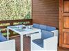 Darüber hinaus gibt es eine große, überdachte Terrasse mit einer Fläche von ca. 24 m², die mit hochwertigen Gartenmöbeln ausgestattet ist.